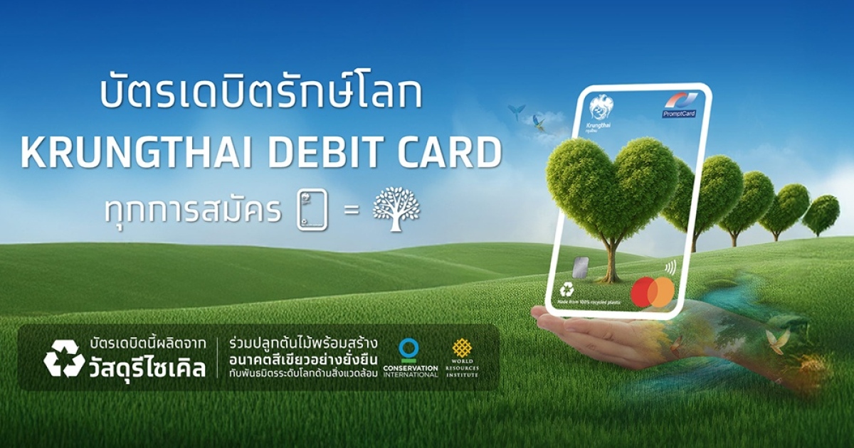 กรุงไทยเปิดตัว “บัตรเดบิตรักษ์โลก” ผลิตจากวัสดุรีไซเคิล พร้อมจับมือมาสเตอร์การ์ดปลูกต้นไม้ 1 ต้นทุกการสมัคร