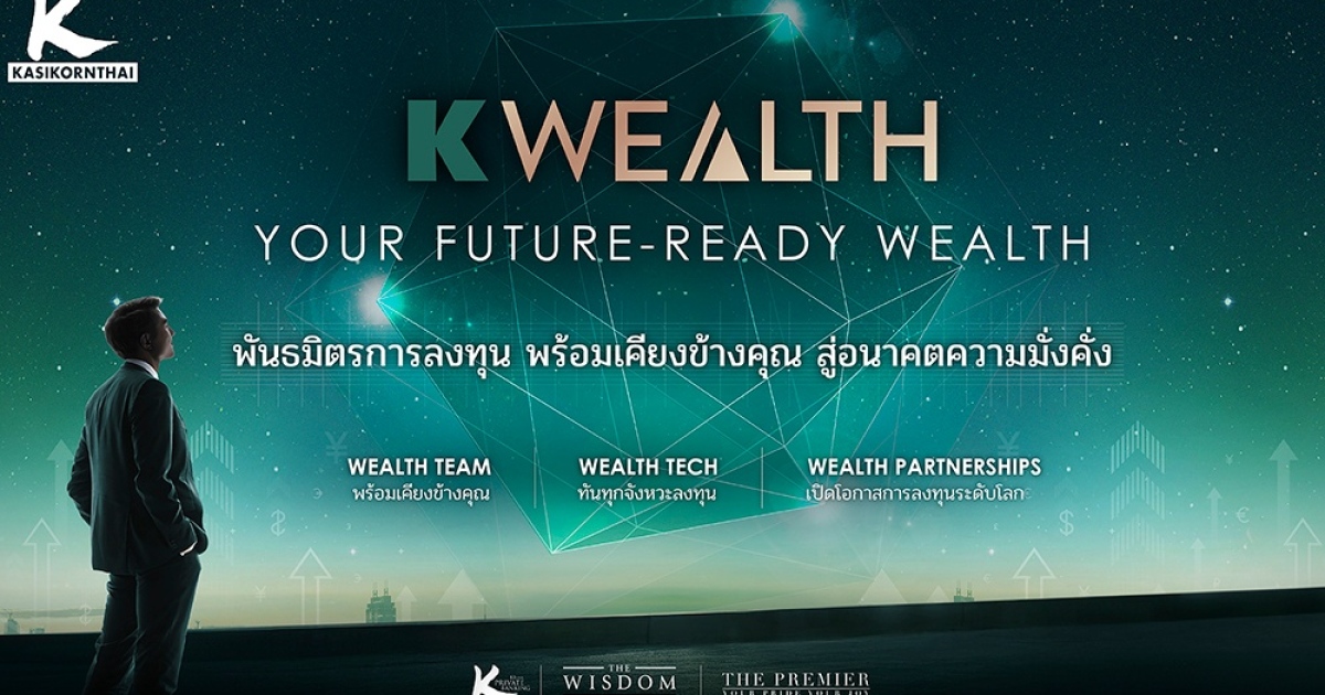 ธนาคารกสิกรไทย ตอกย้ำความเป็นผู้นำอันดับ 1 ด้านบริหารความมั่งคั่ง ยกระดับ K WEALTH เป็น "Lifelong Trusted Advisor ที่ปรึกษาด้านการลงทุนที่ลูกค้าไว้ใจในทุกช่วงชีวิต" ศูนย์รวมความเชี่ยวชาญในการบริหารความมั่งคั่ง พร้อมโซลูชันที่ครอบคลุม การเงิน การลงทุน ธุรกิจ และการดูแลคุ้มครองรอบด้าน ภายใต้คอนเซ็ปต์ "Your Future-Ready Wealth พันธมิตรการลงทุน พร้อมเคียงข้างคุณ สู่อนาคตความมั่งคั่ง" มุ่งเสริมแกร่งให้นักลงทุนไทยรับมือปัจจัยผันผวนของ VUCA ทั้งเศรษฐกิจ ตลาดทุน และภูมิรัฐศาสตร์ โดยผสาน 3 ศักยภาพของ Wealth Team, Wealth Tech และ Wealth Partnerships