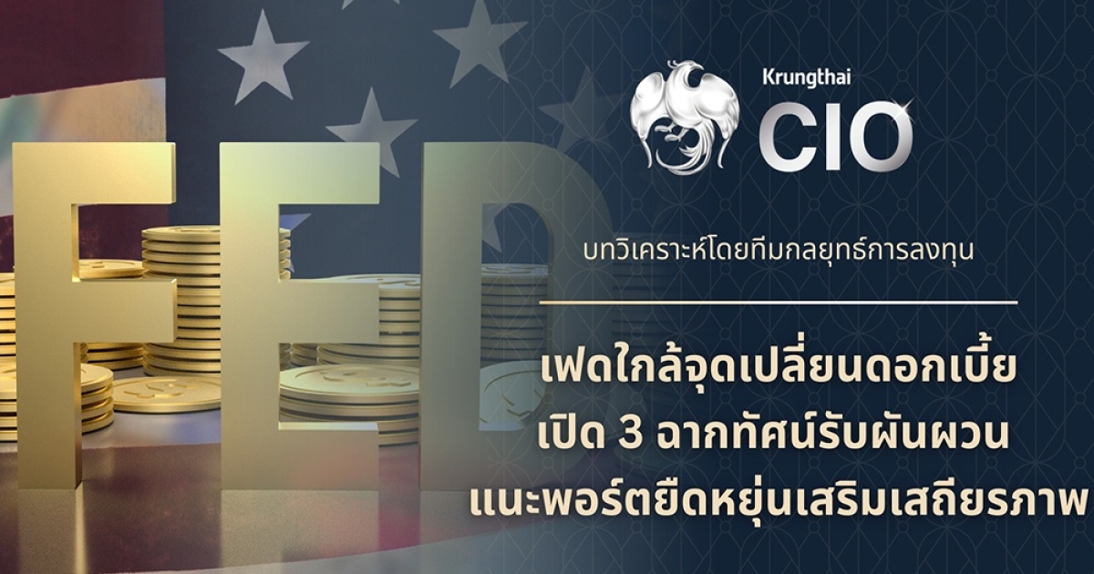 Krungthai CIO ชี้เฟดใกล้จุดเปลี่ยนดอกเบี้ย เปิด 3 ฉากทัศน์รับความผันผวน แนะพอร์ตยืดหยุ่น-เพิ่มหุ้นมั่นคง-ถือทอง เสริมเสถียรภาพ
