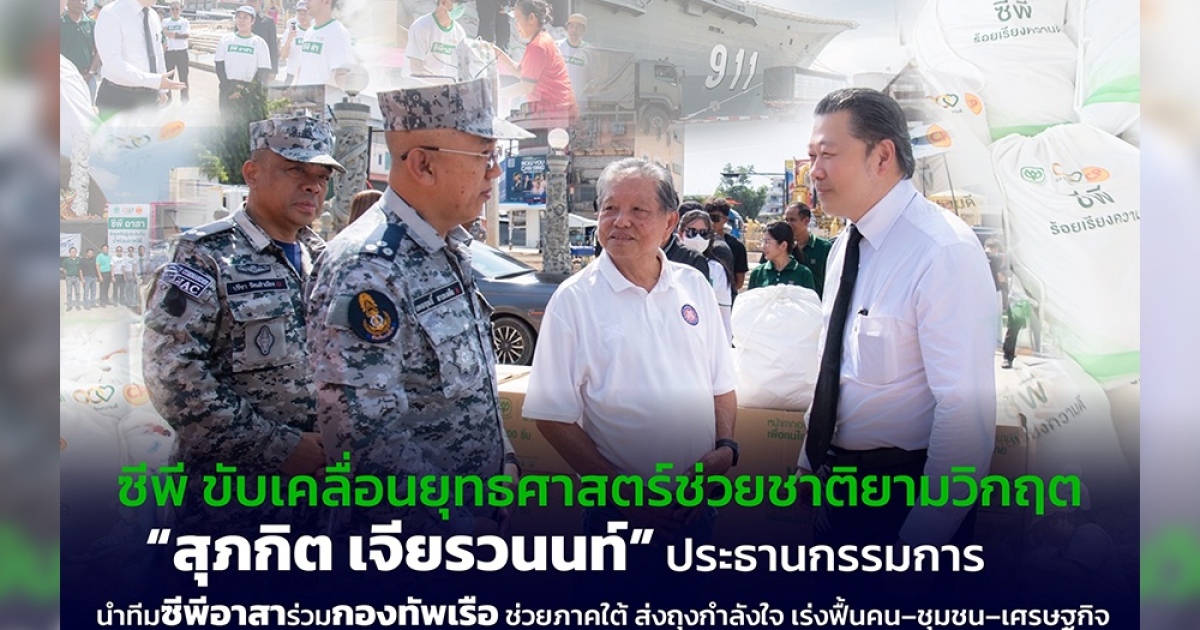 ซีพี เดินหน้าขับเคลื่อนยุทธศาสตร์ช่วยชาติยามวิกฤต “สุภกิต เจียรวนนท์” ประธานกรรมการ นำทัพซีพีอาสาลงพื้นที่หาดใหญ่ มอบถุงกำลังใจผ่านกองทัพเรือ พร้อมเดินหน้า ‘ฟื้นคน–ฟื้นชุมชน–ฟื้นเศรษฐกิจ’ หลังน้ำท่วมใต้