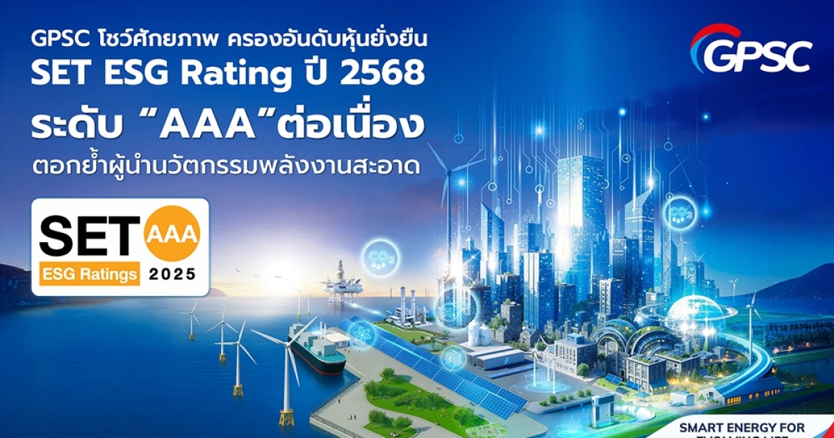 GPSC โชว์ศักยภาพ ครองอันดับหุ้นยั่งยืน SET ESG Rating ปี 2568 ระดับ “AAA” ต่อเนื่อง ตอกย้ำผู้นำนวัตกรรมพลังงานสะอาด