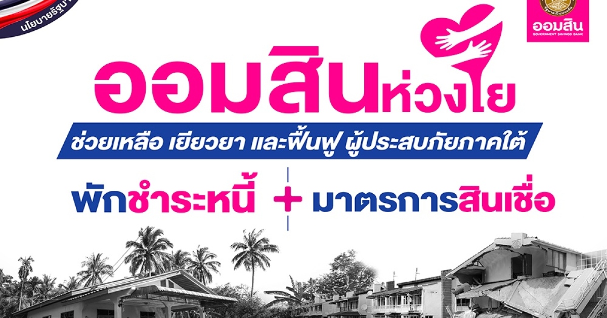 ออมสิน ออกมาตรการช่วยผู้ประสบภัยใต้ พักหนี้-ไม่คิดดอกเบี้ย กลุ่มไม่เกินล้าน นาน 12 เดือน ตามนโยบายรัฐ เติมมาตรการดูแลกลุ่มหนี้เกินล้านให้พักหนี้-ไม่คิดดอกเบี้ย นาน 3 เดือน พร้อมสินเชื่อเยียวยา ฟื้นฟู ดอกเบี้ย 0% ปีแรก