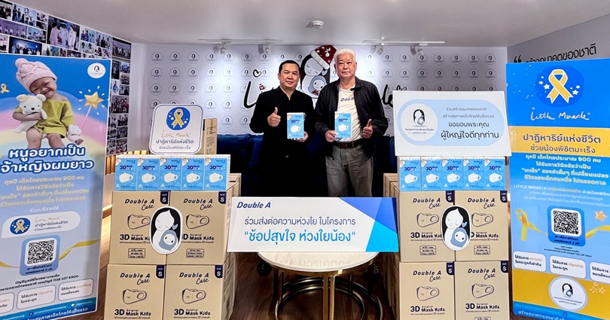 หลังจากดั๊บเบิ้ล เอ ได้จัดโครงการ "ช้อปสุขใจ ห่วงใยน้อง" โดยลูกค้าที่ช้อปสินค้าผ่านเว็บไซต์ Double A Delivery ทุก ๆ 1 การสั่งซื้อ เท่ากับการบริจาคหน้ากากอนามัยสำหรับเด็ก Double A Care 3D Mask Kids จำนวน 1 กล่อง มอบให้กับน้องๆ ในมูลนิธิโรงพยาบาลเด็ก ระหว่างวันที่ 1 ถึง 20 ธันวาคมที่ผ่านมา ซึ่งมีลูกค้าให้ความสนใจเข้าร่วมโครงการฯ ทำให้ได้รับหน้ากากอนามัยฯ สำหรับเด็ก รวมทั้งสิ้นกว่า 300 กล่อง ทั้งนี้ นายชาญวิทย์ จารุสมบัติ กรรมการบริษัท และรองกรรมการผู้จัดการใหญ่ ด้านสื่อสารและภาพลักษณ์องค์กร ดั๊บเบิ้ล เอ เป็นตัวแทนเข้ามอบหน้ากากอนามัยสำหรับเด็ก Double A Care จากโครงการฯ โดยมี นายภาณุวัตร์ ศรีสุวรรณ รองหัวหน้ากลุ่มงานบริษัททั่วไป มูลนิธิโรงพยาบาลเด็ก เป็นผู้แทนรับมอบ เพื่อใช้ป้องกันการแพร่ระบาดของเชื้อไข้หวัดและไวรัสให้กับน้องๆ ที่อยู่ภายใต้การดูแลรักษาของมูลนิธิฯ ซึ่งเป็นเด็กป่วยที่ยากไร้และเด็กที่เป็นโรคยุ่งยากซับซ้อน นับเป็นโครงการที่ลูกค้าดั๊บเบิ้ล เอ ได้ร่วมส่งความห่วงใยในสุขอนามัยและคุณภาพชีวิตที่ดี สร้างสังคมเข้มแข็งอย่างยั่งยืน