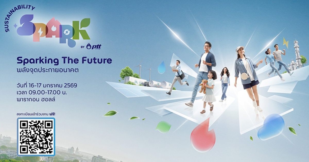 กลุ่ม ปตท. ขอเชิญชวนทุกท่านร่วมเป็นส่วนหนึ่งของการจุดประกายอนาคตที่ยั่งยืน ในงาน “Sustainability Spark by PTT Group 2026: Sparking the Future พลังจุดประกายอนาคต”