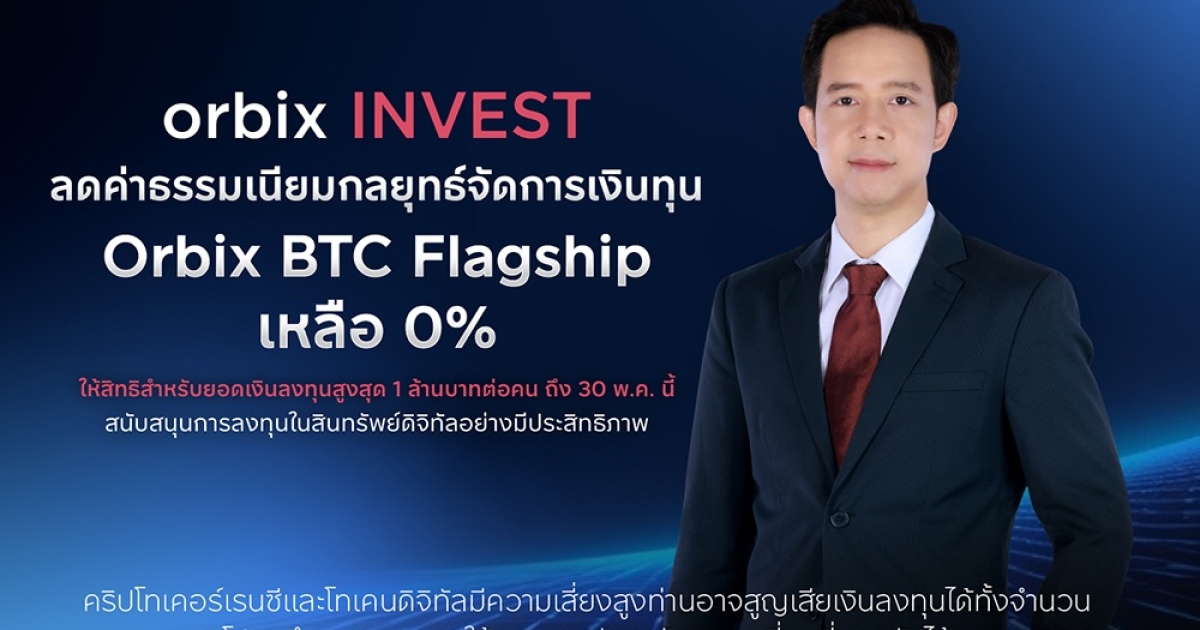 orbix INVEST ลดค่าธรรมเนียมกลยุทธ์จัดการเงินทุน Orbix BTC Flagshipเหลือ 0% ให้สิทธิสำหรับยอดเงินลงทุนสูงสุด 1 ล้านบาทต่อคนถึง 30 พ.ค. นี้ สนับสนุนการลงทุนในสินทรัพย์ดิจิทัลอย่างมีประสิทธิภาพ