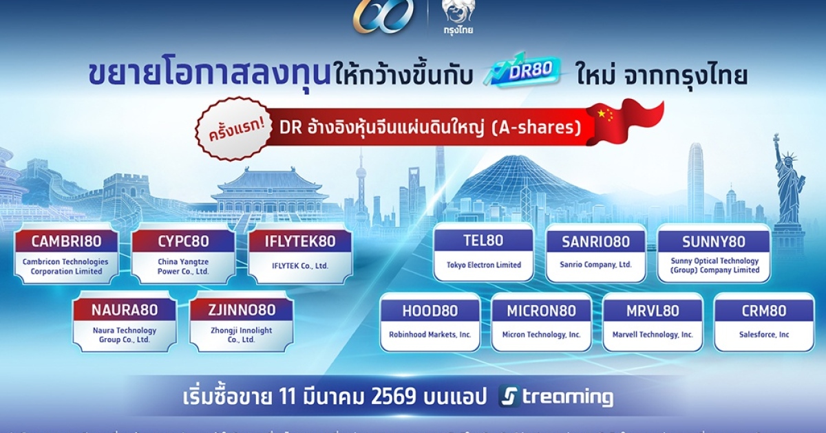กรุงไทยเดินหน้าขยายโอกาสลงทุนต่างประเทศ เตรียมเปิดขาย 12 DR ตัวใหม่ อ้างอิงหุ้นจีน A-Shares และหุ้นเมกะเทรนด์ชั้นนำ ดีเดย์ 11 มี.ค.นี้