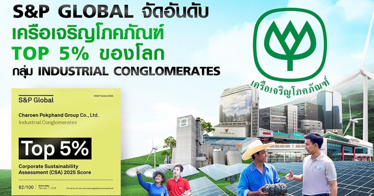 เมื่อวันที่ 25 กุมภาพันธ์ 2569 เครือเจริญโภคภัณฑ์ (CP Group) ได้รับการจัดอันดับ Top 5% ในกลุ่มอุตสาหกรรม Industrial Conglomerates จากการประกาศผล The Sustainability Yearbook 2026 โดย S&P Global ด้วยคะแนนประเมิน 82 จาก 100 คะแนน นับเป็นการติดอันดับต่อเนื่องเป็นปีที่ 5 โดยการจัดอันดับปีนี้มีบริษัทจากทั่วโลกกว่า 9,200 แห่งเข้าร่วมการประเมิน และมีเพียง 848 บริษัทที่ได้รับการคัดเลือกเข้าสู่ Sustainability Yearbook สะท้อนมาตรฐานการประเมินที่เข้มข้น โดยในกลุ่ม Industrial Conglomerates มีบริษัทเข้าร่วม 95 แห่ง และมีเพียง 5 บริษัทที่ได้คะแนนสูงสุดในกลุ่ม ได้แก่ Keppel (สิงคโปร์), CP Group (ไทย), Siemens (เยอรมนี), SK Inc (เกาหลีใต้) และ Metlen Energy & Metal (กรีซ)