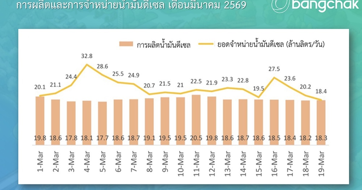 จากสถานการณ์ความไม่สงบในภูมิภาคตะวันออกกลาง บริษัท บางจาก คอร์ปอเรชั่น จำกัด (มหาชน) ได้ดำเนินการอย่างเต็มที่ทั้งด้านการจัดหา การกลั่น และการกระจายน้ำมัน โดยเพิ่มระดับการกลั่นน้ำมันอย่างต่อเนื่องตลอดช่วง 3 สัปดาห์ที่ผ่านมา มีการกลั่นรวมประมาณ 290,000 บาร์เรลต่อวัน หรือ 110% ของกำลังการผลิตติดตั้ง หรือคิดเป็นน้ำมันดีเซลประมาณ 19 ล้านลิตรต่อวัน ขณะเดียวกัน ความต้องการใช้น้ำมันในภาพรวมของประเทศเพิ่มขึ้นอย่างรวดเร็ว โดยยอดจำหน่ายในบางช่วงสูงกว่าระดับการผลิต บริษัทฯ จึงเร่งนำน้ำมันออกจากโรงกลั่นและกระจายไปยังพื้นที่ต่าง ๆ ทั่วประเทศอย่างเต็มที่ โดยให้ความสำคัญกับการจัดส่งไปยังสถานีบริการเป็นลำดับแรก พร้อมมีการรายงานปริมาณการผลิตและปริมาณน้ำมันสำรองต่อหน่วยงานที่เกี่ยวข้องอย่างสม่ำเสมอ และติดตามสถานการณ์อย่างใกล้ชิด อย่างไรก็ดี จากความต้องการที่เพิ่มขึ้นประมาณร้อยละ 30 ส่งผลให้สถานีบริการบางแห่งอาจไม่สามารถรับและหมุนเวียนน้ำมันได้ทันในบางช่วงเวลา ทั้งนี้ จากมาตรการของภาครัฐที่ผ่อนปรนข้อจำกัดด้านการขนส่งและเงื่อนไขการสำรองน้ำมัน ทำให้การกระจายน้ำมันสามารถดำเนินการได้คล่องตัวมากขึ้น และช่วยให้สถานการณ์ทยอยคลี่คลาย ซึ่งบริษัทฯ จะยังคงดำเนินการผลิตในระดับสูงอย่างต่อเนื่องในระยะต่อไป และขอความร่วมมือพี่น้องประชาชนไม่ตื่นตระหนก พร้อมใช้พลังงานอย่างเหมาะสม ตามแนวทางหลักปรัชญาของเศรษฐกิจพอเพียง