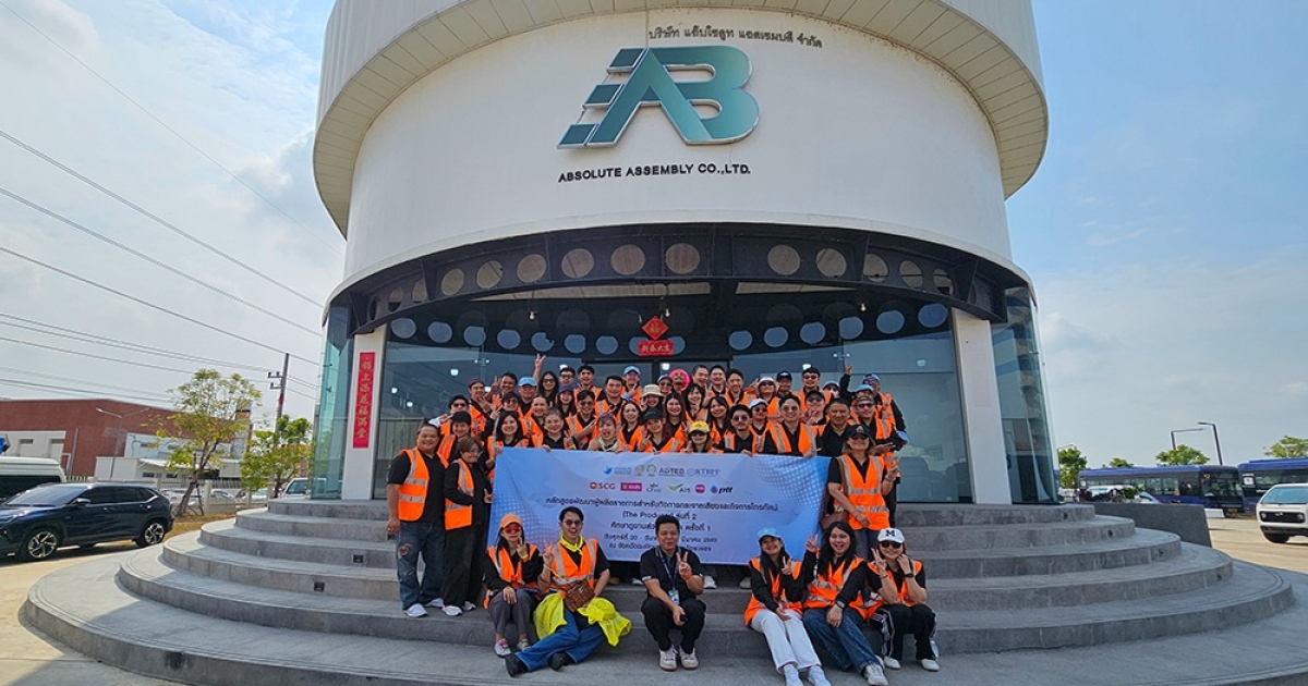 ผู้เข้าอบรมหลักสูตร The Producer รุ่นที่ 2 ศึกษาดูงานส่วนภูมิภาคครั้งที่ 1 ณ บริษัท ไทย สมายล์ บัส จำกัด โดย บริษัท แอ๊บโซลูท แอสเซมบลี จำกัด (AAB) อำเภอบ้านโพธิ์ จังหวัดฉะเชิงเทรา