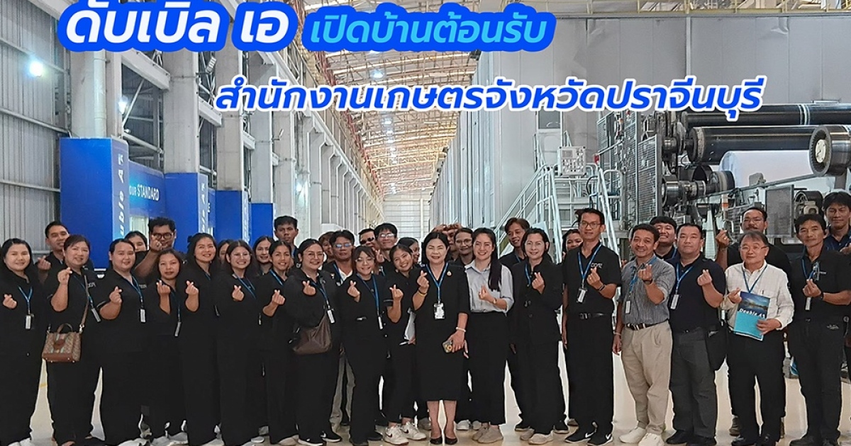 ดั๊บเบิ้ล เอ เปิดบ้าน ต้อนรับสำนักงานเกษตรจังหวัดปราจีนบุรี และสำนักงานเกษตรอำเภอในจังหวัดปราจีนบุรี โดยมี นางสาวธนันนท์ ศรีสุวะเกษตรจังหวัดปราจีนบุรี พร้อมคณะเข้าเยี่ยมชมกระบวนการผลิตเยื่อและกระดาษที่ใช้เทคโนโลยีชั้นนำเป็นมิตรกับสิ่งแวดล้อม ตามมาตรฐานคุณภาพ ISO 9001 และมาตรฐานการจัดการด้านสิ่งแวดล้อม ISO 14001 รวมทั้งได้รับรองอุตสาหกรรมสีเขียว (Green Industry) ของกระทรวงอุตสาหกรรม ทั้งนี้ คณะเยี่ยมชมได้เข้าใจถึงที่มาวัตถุดิบจาก "ต้นกระดาษ" ไม้ปลูกของเกษตรกรที่ผ่านการวิจัยและพัฒนาพันธุ์เหมาะสมกับการผลิตกระดาษคุณภาพ พร้อมยังช่วยสร้างงาน สร้างรายได้ให้กับเกษตรกรไทย และเพิ่มพื้นที่สีเขียว มีส่วนช่วยลดโลกร้อน สำหรับการเยี่ยมชมในครั้งนี้นับเป็นการเปิดโอกาสในการสร้างความเข้าใจอันดีระหว่างส่วนงานราชการ และสถานประกอบการในการพัฒนาอุตสาหกรรมและเสริมสร้างเศรษฐกิจชุมชนได้อย่างยั่งยืน ภายใต้แนวคิด "Double A Better Paper, Better World"