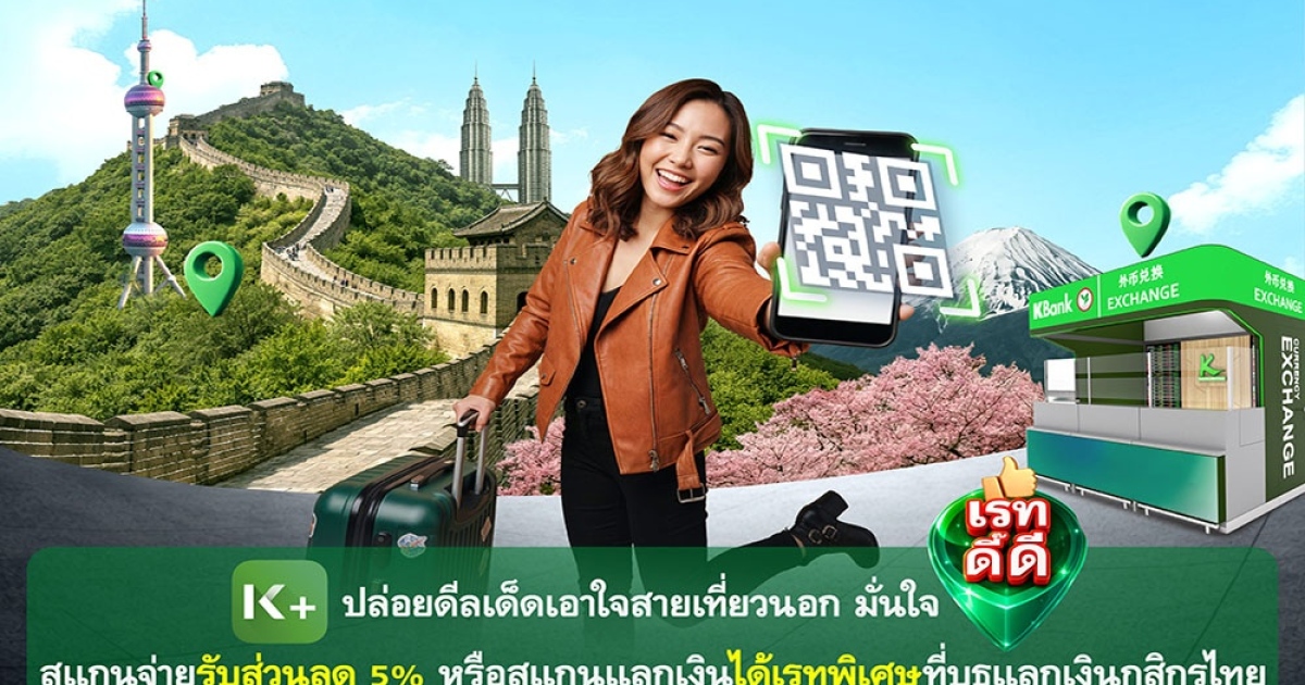 K PLUS ปล่อยดีลเด็ดเอาใจสายเที่ยวนอก มั่นใจเรทดี๊ดี สแกนจ่ายรับส่วนลด 5% หรือสแกนแลกเงินได้เรทพิเศษที่บูธแลกเงินกสิกรไทย