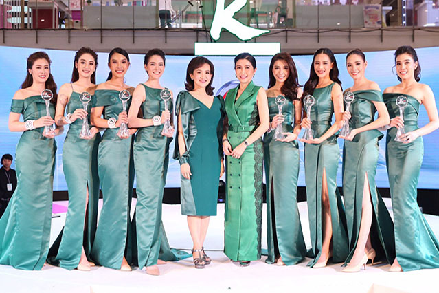 นางสาวขัตติยา อินทรวิชัย (ที่ 4 จากขวา ) กรรมการผู้จัดการธนาคารกสิกรไทย ในฐานะประธานดำเนินโครงการประกวด KBank e-Girls Generation X และแพทย์หญิงนลินี ไพบูลย์ (ที่ 4 จากซ้าย ) ประธานกรรมการตัดสินฯ ร่วมงาน “KBank e-Girls Generation X” รอบชิงชนะเลิศ เฟ้นหา 8 สาวแบรนด์แอมบาสเดอร์นำเสนอผลิตภัณฑ์และบริการของธนาคารกสิกรไทย 2 ปี พร้อมรับผลตอบแทนรวมคนละกว่า 2 ล้านบาท ณ ลานอีเดน1 ชั้น 1 ศูนย์การค้าเซ็นทรัลเวิลด์ เมื่อเร็ว ๆ นี้