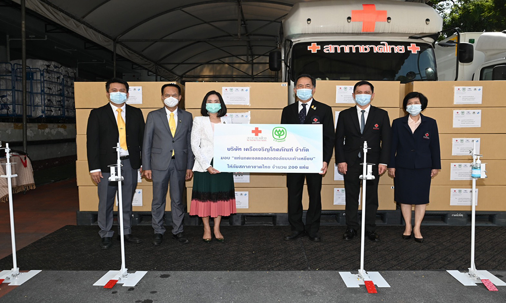 เครือซีพีมอบแท่นกดเจลแอลกอฮอล์แบบเท้าเหยียบ ให้แก่สภากาชาดไทย เพื่อแจกรพ.ทั่วประเทศ ลดเสี่ยงติดเชื้อโควิด-19