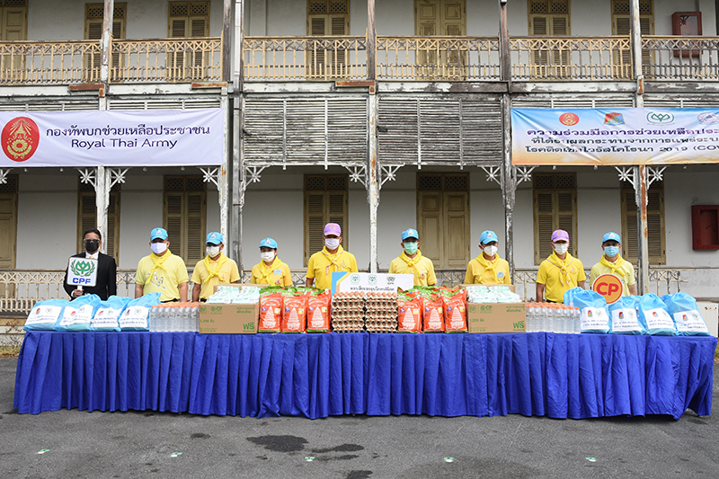 การเข้าร่วมกิจกรรมของกองทัพบกในครั้งนี้ ได้นำผลิตภัณฑ์อุปโภคบริโภคคุณภาพ ประกอบด้วย เนื้อไก่ 500 กิโลกรัม เนื้อหมู 500 กิโลกรัม ไข่ไก่สด 6,000 ฟอง ข้าวสารตราฉัตร 6,500 กิโลกรัม น้ำดื่ม 5,000 ขวด นอกจากนี้ยังมีหน้ากากอนามัยซีพี จำนวน 50,000 ชิ้น และกาแฟมวลชน 300 ถ้วย เพื่อบรรเทาความเดือดร้อนพี่น้องประชาชน 5 ชุมชนในจังหวัดนนทบุรี ได้แก่ ชุมชนบางขวาง ชุมชนโยกย้าย ชุมชนศรีพรสวรรค์1 ชุมชนศรีพรสวรรค์ 2 และชุมชนซอยแสงเทียน รวม 500 หลังคาเรือน