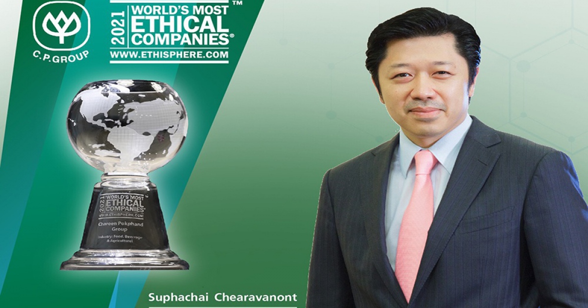 เครือซีพี ติด 1 ใน 135 บริษัทที่มีจริยธรรมมากที่สุดในโลก The 2021 World’s Most Ethical Companies จาก Ethisphere สถาบันระดับโลกที่กำหนดมาตรฐานการดำเนินธุรกิจที่มีจริยธรรม “ศุภชัย เจียรวนนท์” รับโล่เกียรติยศพร้อมเผยค่านิยมองค์กรคือเข็มทิศกำกับการทำธุรกิจอย่างมีจริยธรรม ส่งผลให้เติบโตยั่งยืนสร้างประโยชน์ต่อทุกประเทศที่เข้าไปลงทุน