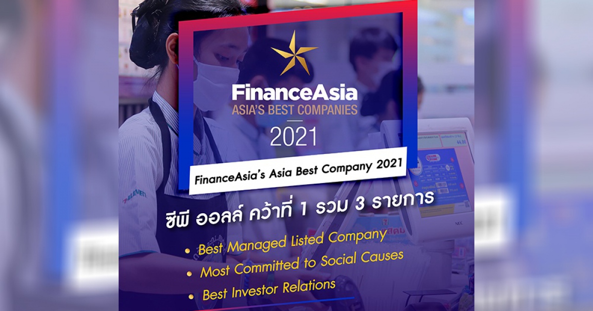 นิตยสารไฟแนนซ์เอเชีย (FinanceAsia) สื่อสิ่งพิมพ์ชั้นนำซึ่งได้รับการยอมรับในระดับภูมิภาค ตั้งแต่ปี 2539 ในฐานะผู้เผยแพร่ข่าวสาร และข้อมูลเชิงลึกด้านการเงิน และตลาดทุนขององค์กรในภูมิภาคเอเชียแปซิฟิก ได้ประกาศรายชื่อสุดยอดบริษัทแห่งเอเชีย ประจำปี 2564 (FinanceAsia Asia’s Best Companies 2021) ใน 6 ประเภท สำหรับประเทศไทย ปรากฎว่า บริษัท ซีพี ออลล์ จำกัด (มหาชน) ได้รับการยกย่องในฐานะสุดยอดองค์กรถึง 3 ด้าน ประกอบด้วย บริษัทจดทะเบียนที่มีการบริหารงานยอดเยี่ยม (Best Managed Listed Company) บริษัทที่มีความมุ่งมั่นสร้างสรรค์ประโยชน์เพื่อสังคมยอดเยี่ยม (Most Committed to Social Causes) และบริษัทด้านนักลงทุนสัมพันธ์ ยอดเยี่ยม (Best Investor Relations)