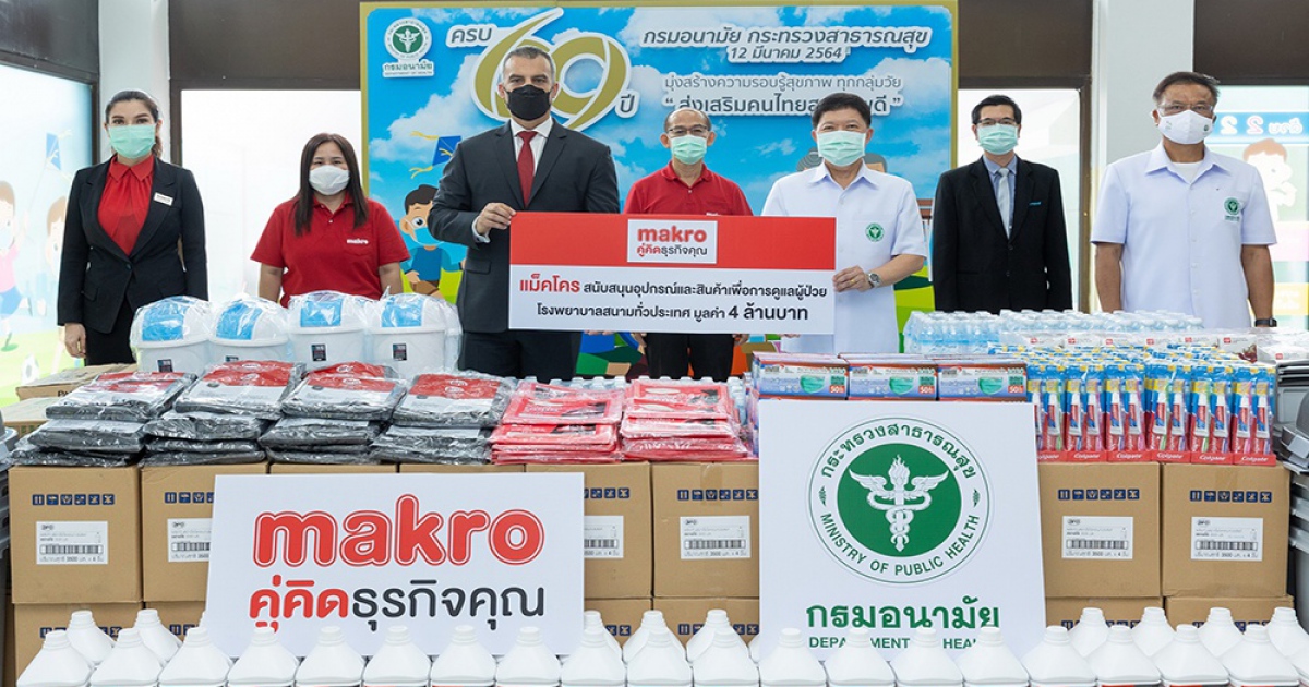 บริษัท สยามแม็คโคร จำกัด (มหาชน) โดย นายริคาร์โด้ เบารอตโต้ ประธานเจ้าหน้าที่บริหาร – หน่วยธุรกิจแม็คโครประเทศไทย นางศิริพร เดชสิงห์ รองประธานเจ้าหน้าที่บริหาร สายงานการสื่อสารองค์กร ส่งมอบอุปกรณ์และสินค้าเพื่อการดูแลผู้ป่วย ให้แก่โรงพยาบาลสนามทั่วประเทศ รวมมูลค่ากว่า 4 ล้านบาท โดยมี นายแพทย์สุวรรณชัย วัฒนายิ่งเจริญชัย อธิบดีกรมอนามัย เป็นผู้รับมอบ ณ กรมอนามัย กระทรวงสาธารณสุข ภายใต้การดำเนินการตามนโยบายด้านการช่วยเหลือสังคมเมื่อเกิดสถานการณ์ภาวะวิกฤตของแม็คโคร และโครงการซีพีร้อยเรียงใจ สู้ภัยโควิด-19 ของเครือเจริญโภคภัณฑ์ ที่ผ่านมาแม็คโครทุกสาขา ได้ทยอยนำส่งอุปกรณ์และสินค้าเพื่อการดูแลผู้ป่วยแก่โรงพยาบาลสนามในต่างจังหวัดแล้วหลายแห่ง