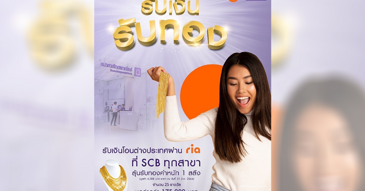 ธนาคารไทยพาณิชย์ เดินหน้าบุกธุรกิจบริการเงินโอนต่างประเทศสำหรับลูกค้าบุคคลอย่างต่อเนื่อง ล่าสุดร่วมกับพันธมิตร Ria Money Transfer หนึ่งในบริษัทรายใหญ่ของโลกในการให้บริการโอนเงินระหว่างประเทศ เชื่อมต่อบริการทางการเงินทั่วโลกอย่างไร้พรมแดน จัดแคมเปญพิเศษ “รับเงิน รับทอง” เพียงรับเงินโอนจากต่างประเทศผ่าน Ria Money Transfer ที่ธนาคารไทยพาณิชย์ทุกสาขา มีสิทธิ์ลุ้นรับทองคำหนัก 1 สลึง ฟรี! จำนวน 25 รางวัล มูลค่ารวมกว่า 175,000 บาท ตั้งแต่วันที่ 16 เมษายน 2564 – 16 มิถุนายน 2564 สอบถามรายละเอียดเพิ่มเติมได้ที่ ศูนย์บริการลูกค้าธนาคารไทยพาณิชย์ โทร. 02-777-7777
