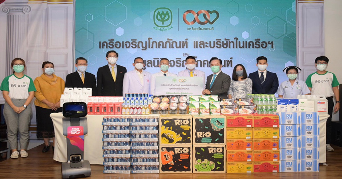 เมื่อวันที่ 7 พฤษภาคม 2564 จากสถานการณ์โควิด-19 ระลอกใหม่ ที่่แพร่ระบาดตั้งแต่เดือนเมษายนที่ผ่านมา ส่งผลให้มีการเปิดโรงพยาบาลสนามในหลายพื้นที่เพื่อรองรับผู้ป่วยที่เพิ่มขึ้นอย่างต่อเนื่อง เครือเจริญโภคภัณฑ์ พร้อมกลุ่มธุรกิจและบริษัทในเครือ ได้ผนึกกำลังกันภายใต้โครงการ "ซีพีร้อยเรียงใจ สู้ภัยโควิด-19" ตามนโยบายของนายธนินท์ เจียรวนนท์ ประธานอาวุโสเครือฯ ที่ประกาศภารกิจเพื่อชาติสนับสนุนงบประมาณรวม 200 ล้านบาท ดำเนินการสนับสนุนอาหาร น้ำดื่ม และการสื่อสารให้แก่โรงพยาบาลสนามในหลายพื้นที่ ล่าสุดนายศุภชัย เจียรวนนท์ ประธานคณะผู้บริหาร เครือซีพี กล่าวขอบคุณแพทย์ พยาบาล โรงพยาบาลตำรวจ ที่เป็นด่านหน้าต่อสู้กับการระบาดของโควิด-19 ในครั้งนี้ และ ได้มอบหมายผู้แทนจากบริษัทในเครือ นำโดย นายวรวิทย์ เจนธนากุล กรรมการบริหาร บมจ. เจริญโภคภัณฑ์อาหาร หรือ ซีพีเอฟ นายพรเทพ เจียรวนนท์ ผู้ช่วยกรรมการผู้จัดการ บริษัท เจียไต๋ จำกัด นายมนัสส์ มานะวุฒิเวช กรรมการผู้จัดการใหญ่ (ร่วม) บมจ. ทรู คอร์ปอเรชั่น น.ส.รุจนาฏก์ วิมลสถิตย์ รองกรรมการผู้จัดการใหญ่บริหาร ด้านบรรษัทสัมพันธ์ เครือซีพีและ ว่าที่ร้อยตรี พรทิพา เรืองฉาง ผู้ชำนาญการอาวุโส บมจ ซีพี ออลล์ ร่วมเป็นผู้แทนเครือฯ ส่งมอบเครื่องอุปโภค บริโภค อาหารพร้อมรับประทาน และอำนวยความสะดวกระบบสื่อสารอินเทอร์เน็ต รวมทั้งน้ำยายับยั้งการเจริญเติบโตของเชื้อไวรัส (i-Sol Tech) จากเจียไต๋ให้แก่โรงพยาบาลตำรวจและโรงพยาบาลสนามของรพ.ตำรวจ โดยมี พล.ต.ท.พรชัย สุธีรกุล นายแพทย์ (สบ 8) โรงพยาบาลตำรวจ และพล.ต.ต. วัชรินทร์ พิภพมงคล นายแพทย์ (สบ. 7) โรงพยาบาลตำรวจ เป็นผู้รับมอบ ณ ชั้น 2 อาคารมหาภูมิพลราชานุสรณ์ โรงพยาบาลตำรวจ
