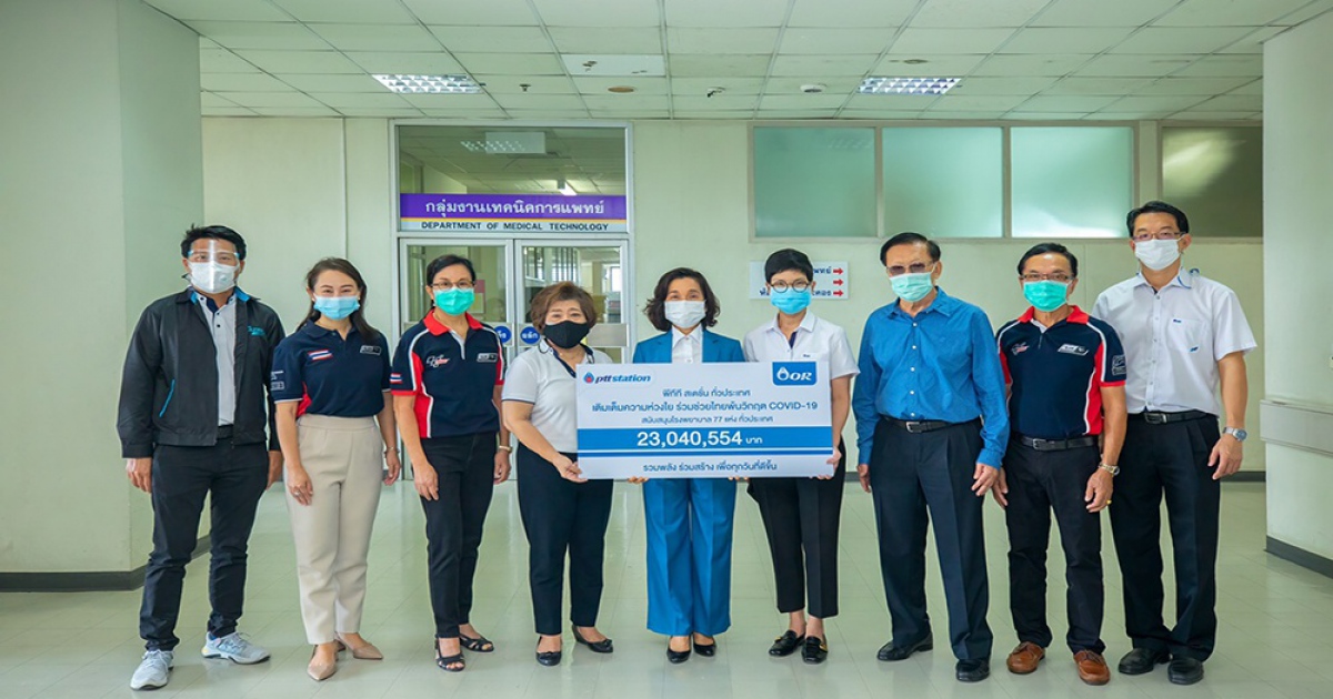 โออาร์ จับมือผู้แทนจำหน่ายสถานีบริการน้ำมัน พีทีที สเตชั่น (PTT Station) ทั่วประเทศ ร่วมเติมเต็มความห่วงใย ช่วยไทยพ้นวิกฤติ โควิด-19 มอบเงินบริจาครวมกว่า 23 ล้านบาท สนับสนุนโรงพยาบาลและหน่วยงานสาธารณสุขใน 77 จังหวัดทั่วประเทศ ในสถานการณ์แพร่ระบาดของโรคโควิด-19