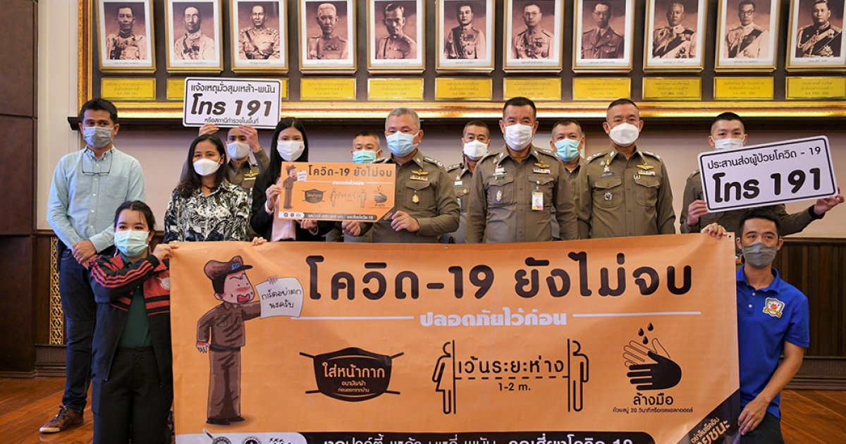 สตช.-สสส.-ภาคีเครือข่าย เร่งรณรงค์ป้องกันภัยโควิด-19 หลังมีกฎหมายให้ใส่หน้ากากอนามัย พร้อมชวนประชาชนเฝ้าระวังแจ้งเบาะแส มั่วสุมตั้งวงเหล้า-พนัน