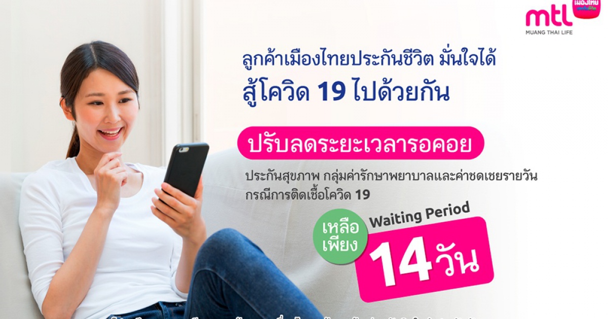 เมืองไทยประกันชีวิต เสริมความอุ่นใจสู้โควิด-19 ปรับลดระยะเวลาที่ไม่คุ้มครอง (Waiting Period) เหลือเพียง 14 วัน