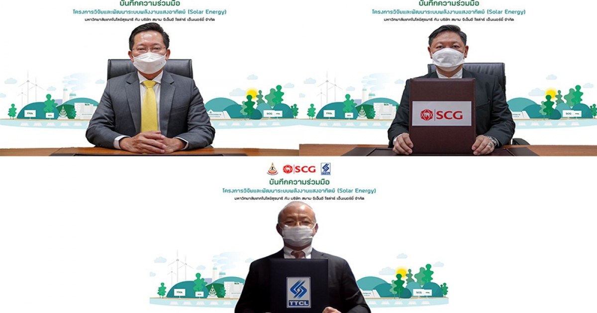 เอสซีจี ทีทีซีแอล และมหาวิทยาลัยเทคโนโลยีสุรนารี (มทส.) แถลงความร่วมมือในการติดตั้ง “โรงไฟฟ้าลอยน้ำจากพลังงานแสงอาทิตย์” ขนาด 2.5 เมกะวัตต์ เพื่อให้บริการด้านผลิตไฟฟ้าจากพลังงานแสงอาทิตย์ (Private PPA: Private Power Purchase Agreement) โดยนำไฟฟ้าไปใช้ภายในโรงพยาบาลมหาวิทยาลัยเทคโนโลยีสุรนารี เพื่อช่วยเหลืองานด้านสาธารณสุขแก่ประชาชนในจังหวัดนครราชสีมาและภาคอีสานตอนใต้ ซึ่งจะช่วยลดภาระค่าไฟฟ้าของโรงพยาบาล และลดการปล่อยก๊าซคาร์บอนไดออกไซด์ ตามแนวทางการพัฒนาอย่างยั่งยืน และแนวคิด ESG พร้อมกันนี้ ได้ลงนามความร่วมมือ “โครงการวิจัยและพัฒนาระบบพลังงานแสงอาทิตย์” (Solar Energy) เพื่อต่อยอดนวัตกรรมด้านพลังงานทดแทนให้กับประเทศไทย รวมทั้งเป็นแหล่งเรียนรู้ด้านพลังงานทางเลือก เพื่อขับเคลื่อนประเทศไทยสู่การใช้พลังงานสะอาดอย่างยั่งยืน และช่วยลดวิกฤติภาวะฉุกเฉินด้านสภาพภูมิอากาศ หรือ Climate Emergency