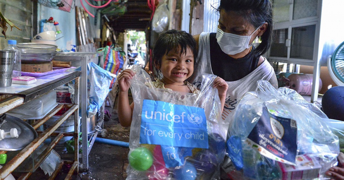 ตั้งแต่วิกฤตโควิด-19 เริ่มระบาดในประเทศไทย ยูนิเซฟได้แจกจ่ายอุปกรณ์ป้องกันและอุปกรณ์เสริมสร้างการเรียนรู้ไปยังครอบครัวกลุ่มเปราะบางไปแล้วกว่า 700,000 ชิ้น เพื่อช่วยปกป้องเด็กและครอบครัวจากโรคโควิด-19 พร้อมส่งเสริมพัฒนาการของเด็กอย่างต่อเนื่องในช่วงการแพร่ระบาด