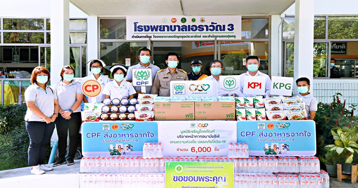 บริษัท เจริญโภคภัณฑ์อาหาร จำกัด (มหาชน) หรือซีพีเอฟ มูลนิธิเจริญโภคภัณฑ์ และ บริษัท เกษตรภัณฑ์อุตสาหกรรม จำกัด หรือเคพีไอ ผนึกกำลัง เดินหน้า “โครงการ CPF ส่งอาหารจากใจ ร่วมต้านภัยโควิด-19” ตามเจตนารมณ์ประธานอาวุโสธนินท์ เจียรวนนท์ เครือเจริญโภคภัณฑ์ อย่างต่อเนื่อง ล่าสุด มอบอาหารสำเร็จรูปพร้อมรับประทาน น้ำดื่ม และหน้ากากอนามัย เพื่อเป็นกำลังใจและสนับสนุนภารกิจทีมแพทย์ พยาบาล และบุคลากรทางการแพทย์ที่ดูแลผู้ป่วยโควิด ตลอด 24 ชั่วโมง โดยมี นายแพทย์เกรียงไกร ตั้งจิตมณีศักดา ผู้อำนวยการ โรงพยาบาลเอราวัณ 3 เป็นผู้รับมอบ จาก นายวินัย จันทร์เมือง และนายสมชาย ไพบูลย์พลาย้อย เป็นตัวแทนซีพี-ซีพีเอฟ ส่งมอบ ณ โรงพยาบาลสนาม ศูนย์กีฬาเฉลิมพระเกียรติทุ่งครุ