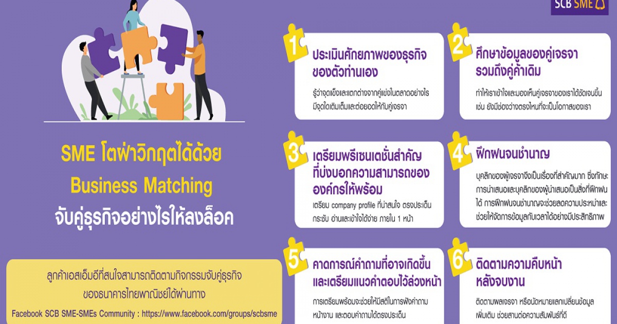 ไทยพาณิชย์แนะเอสเอ็มอีทำ Business Matching สร้างโอกาสโตฝ่าวิกฤต เปิดเคล็ดลับเตรียมตัวจับคู่ธุรกิจอย่างไรให้ลงล็อค
