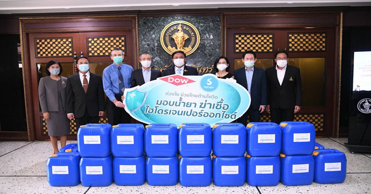 นับตั้งแต่มีการระบาดของโควิด-19 ระลอกใหม่ตั้งแต่ต้นปี พ.ศ. 2564 กลุ่มบริษัท ดาว ประเทศไทย (Dow) ร่วมกับกลุ่มบริษัทโซลเวย์ (Solvay) สนับสนุนน้ำยาฆ่าเชื้อไฮโดรเจนเปอร์ออกไซด์ ผลิตภัณฑ์ของบริษัท เอ็มทีพี เอชพี เจวี จำกัด ซึ่งเป็นบริษัทร่วมทุนระหว่าง Dow และ Solvay กว่า 1 แสนลิตร ให้กับกรุงเทพมหานครและหน่วยงานต่าง ๆ ในจังหวัดระยอง (เพิ่มเติมจากที่มอบไปแล้วกว่า 15 ล้านลิตรในปี 2563) เพื่อใช้ฉีดพ่นฆ่าเชื้อควบคุมการแพร่ระบาดของโควิด-19 ระลอกใหม่ โดยไฮโดรเจนเปอร์ออกไซด์สามารถฆ่าเชื้อโรคได้ดี และยังเป็นมิตรต่อสิ่งแวดล้อมเพราะสลายตัวกลายเป็นน้ำและออกซิเจนได้หลังใช้จึงไม่มีสารพิษตกค้าง