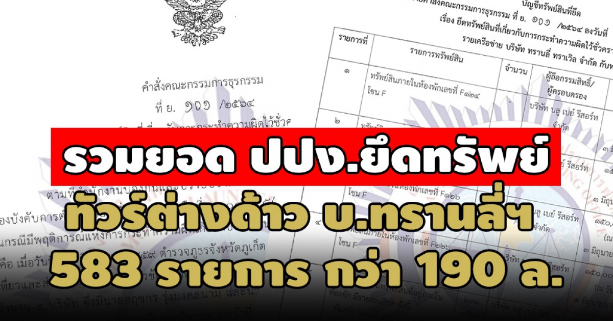 ใช้ชื่อ 'ดช.'ถือหุ้นใหญ่! เปิดตัวบ.ทรานลี่ ทราเวิล ถูกปปง. อายัดทรัพย์ร้อยล.