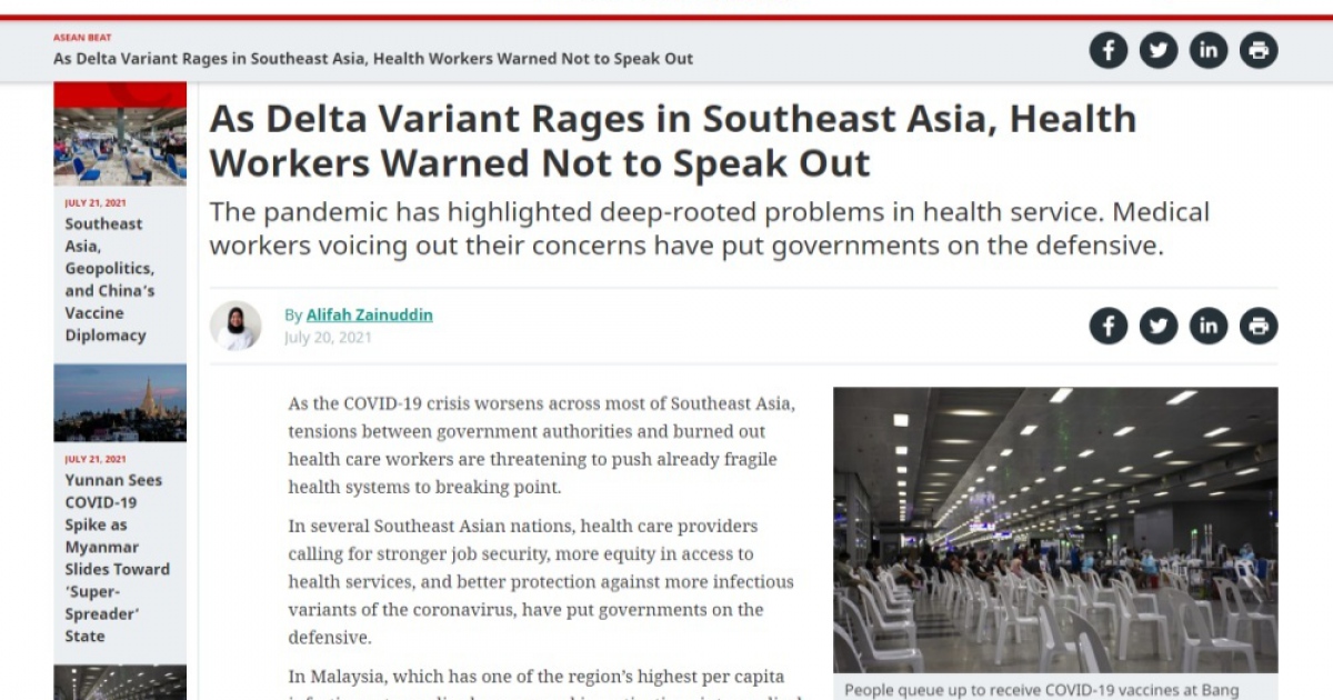 เรียบเรียงจาก:https://thediplomat.com/2021/07/as-delta-variant-rages-in-southeast-asia-health-workers-warned-not-to-speak-out/