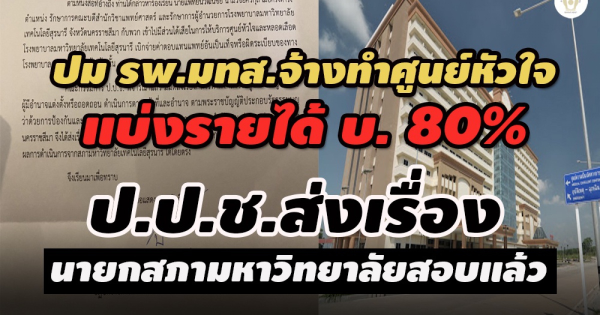 แฉ! รพ.มทส.จ้างทำศูนย์หัวใจแบ่งรายได้เอกชนสูง 80% ทั้งที่ใช้เครื่องมือตัวเอง-หวั่นขาดทุน