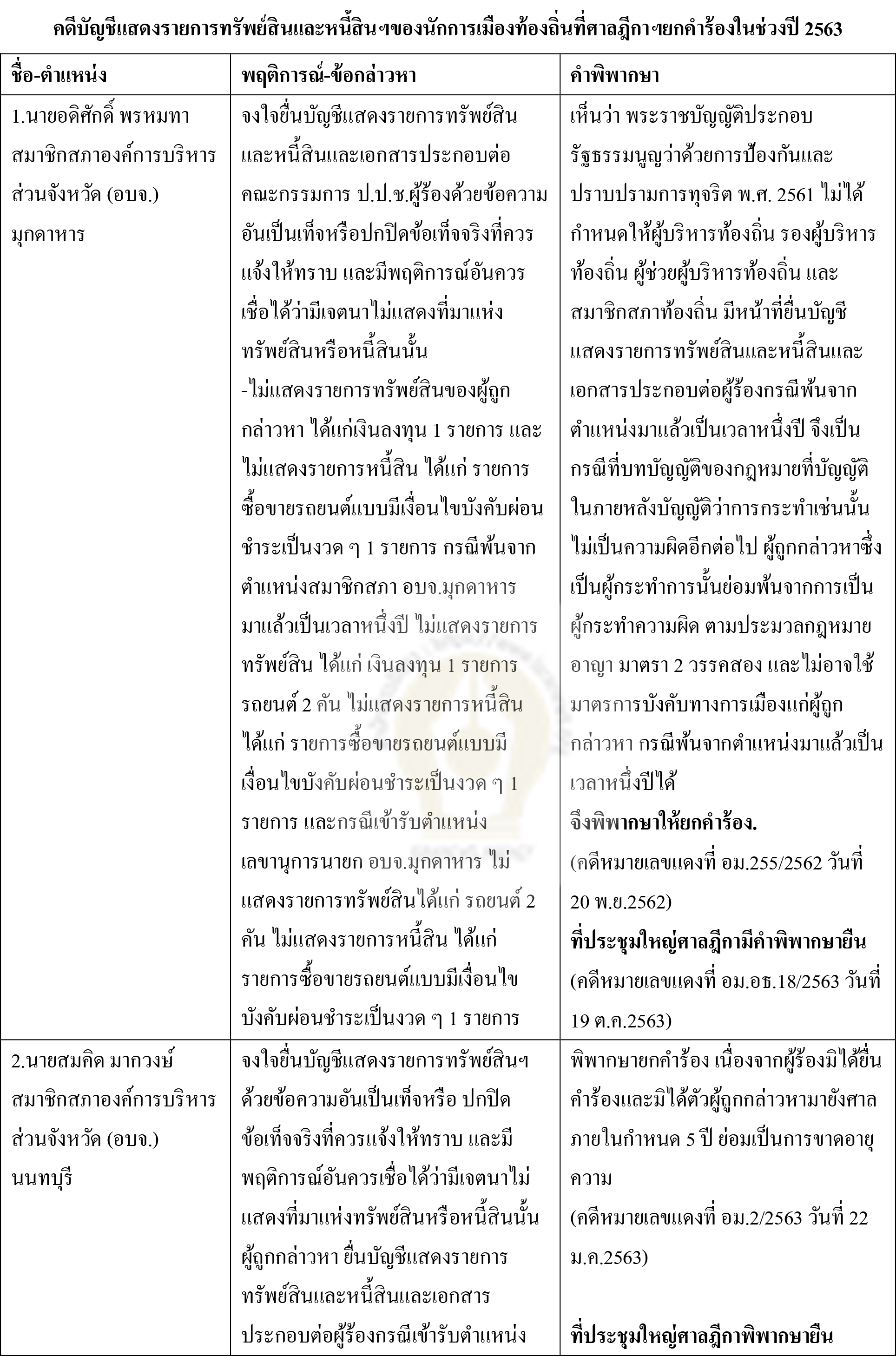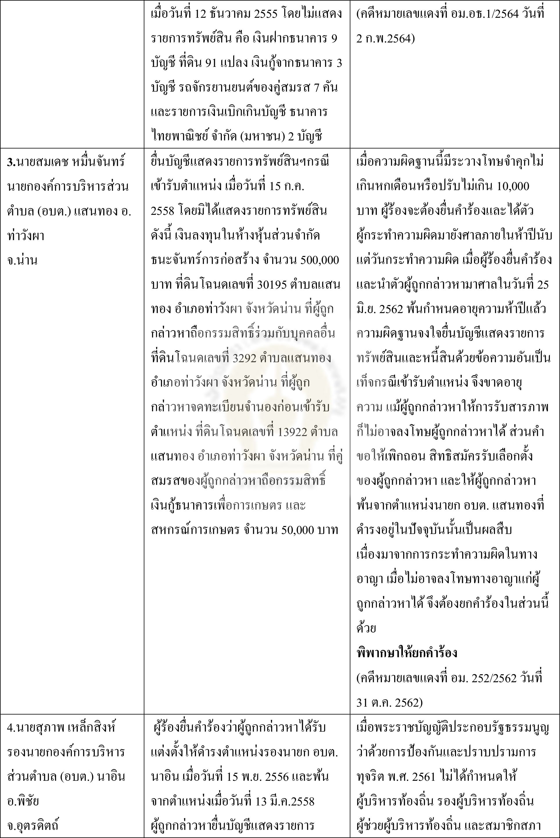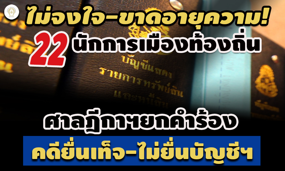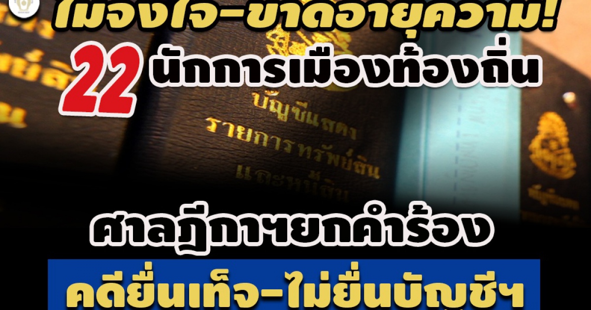 รวบรวม 22 นักการเมืองท้องถิ่น ศาลฎีกาฯพิพากษา ยกคำร้อง คดียื่นเท็จ-ไม่ยื่นบัญชีทรัพย์สินรอบปี 2563 เหตุไม่เจตนา - ขาดอายุความ 5 ปี - กม.ป.ป.ช.ปี 2561 ไม่กำหนดตำแหน่งให้มีหน้าที่ต้องยื่น ครบ นายก อบต. – เทศมนตรี - อบจ.