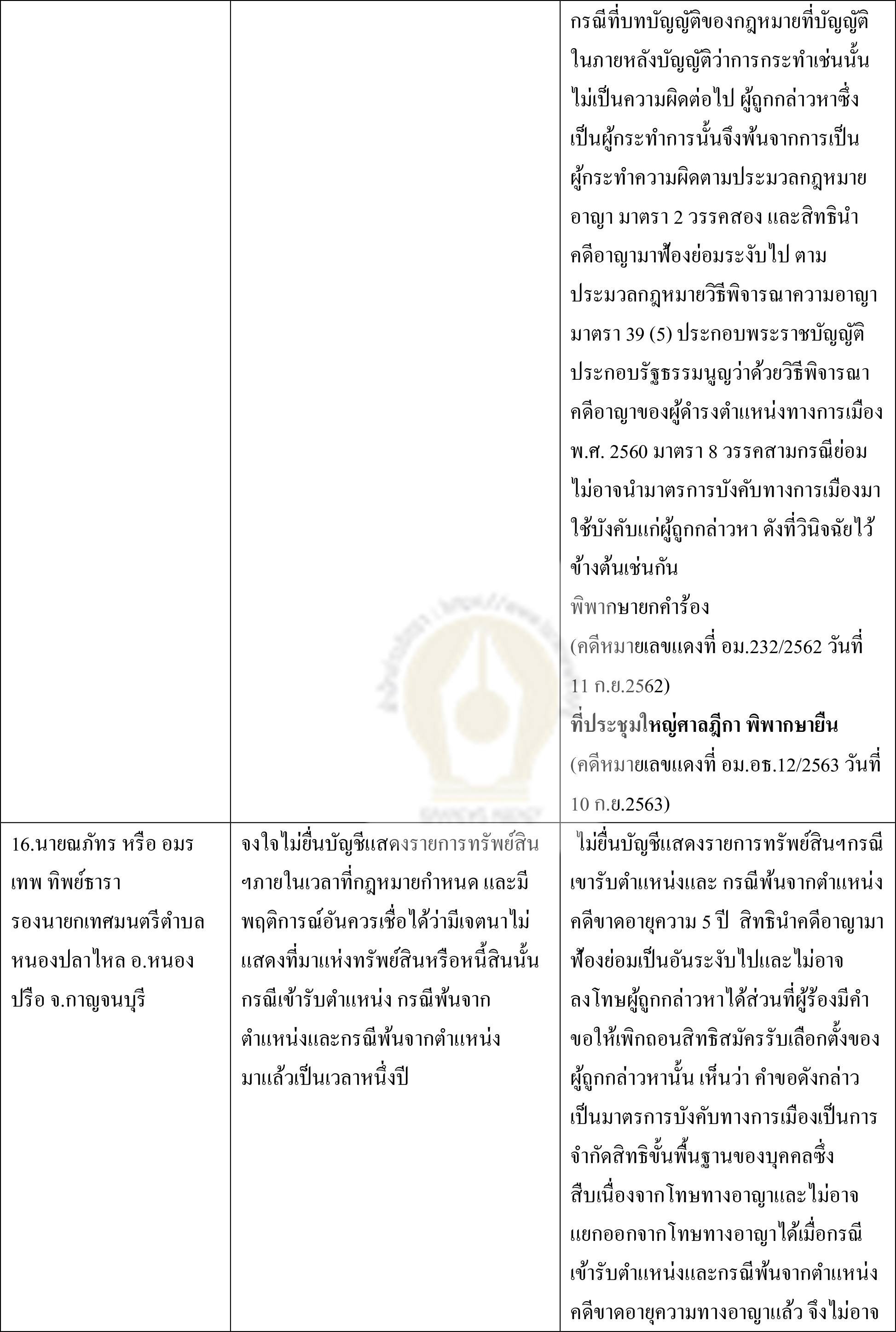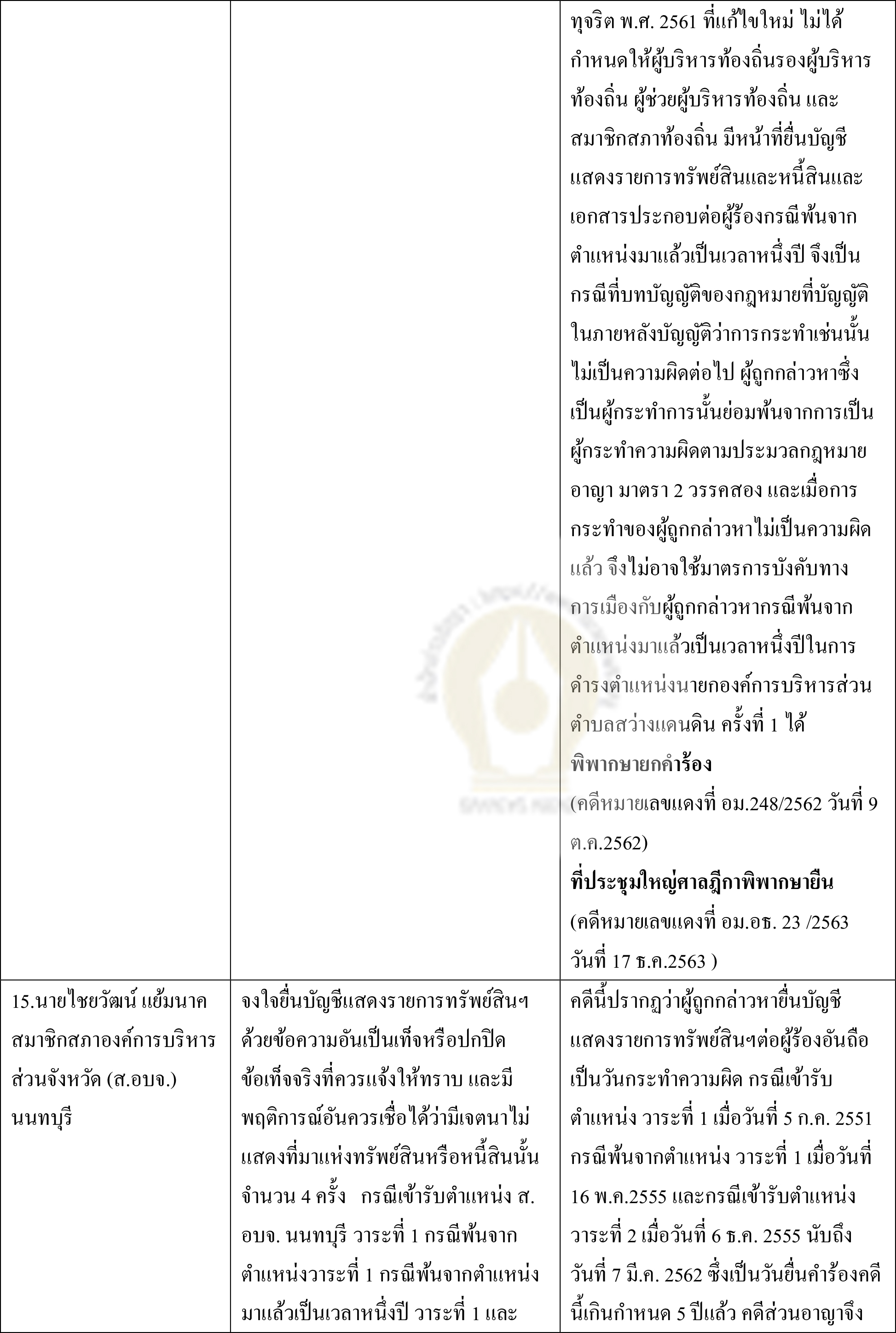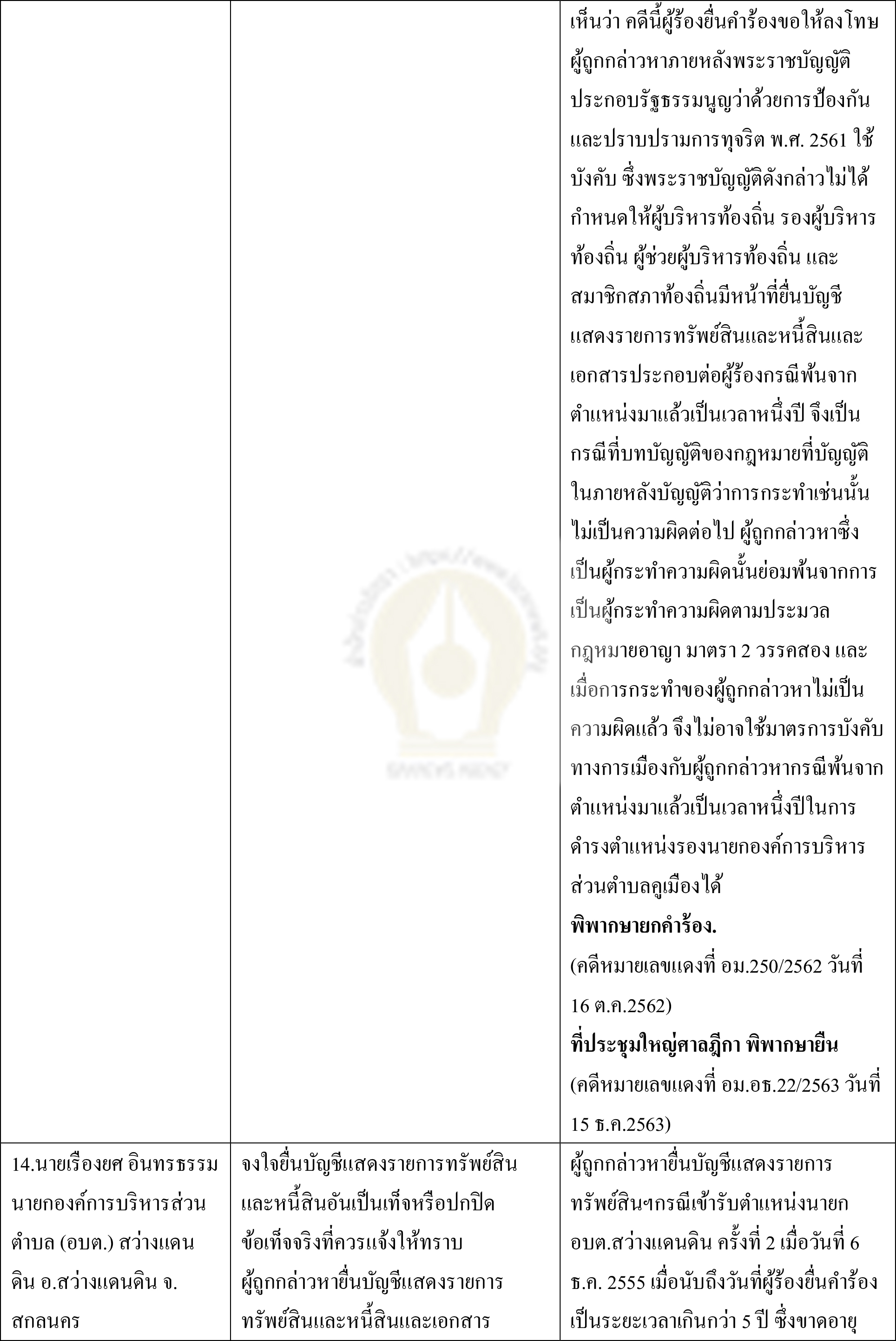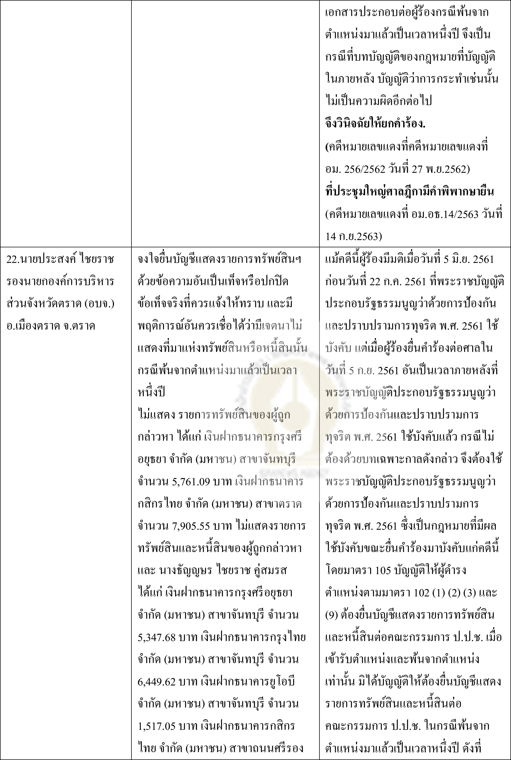 รวบรวม 22 นักการเมืองท้องถิ่น ศาลฎีกาฯพิพากษา ยกคำร้อง คดียื่นเท็จ-ไม่ยื่นบัญชีทรัพย์สินรอบปี 2563 เหตุไม่เจตนา - ขาดอายุความ 5 ปี - กม.ป.ป.ช.ปี 2561 ไม่กำหนดตำแหน่งให้มีหน้าที่ต้องยื่น ครบ นายก อบต. – เทศมนตรี - อบจ.