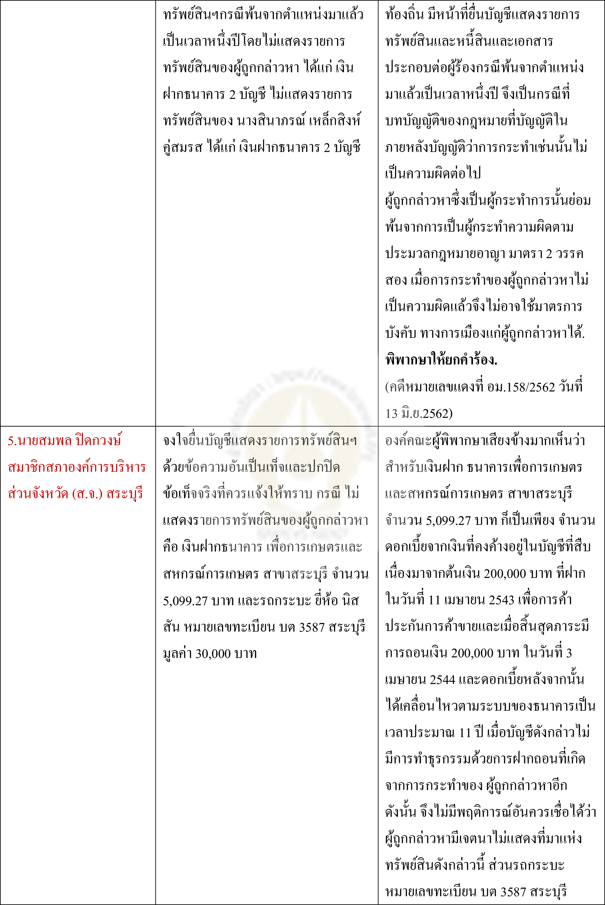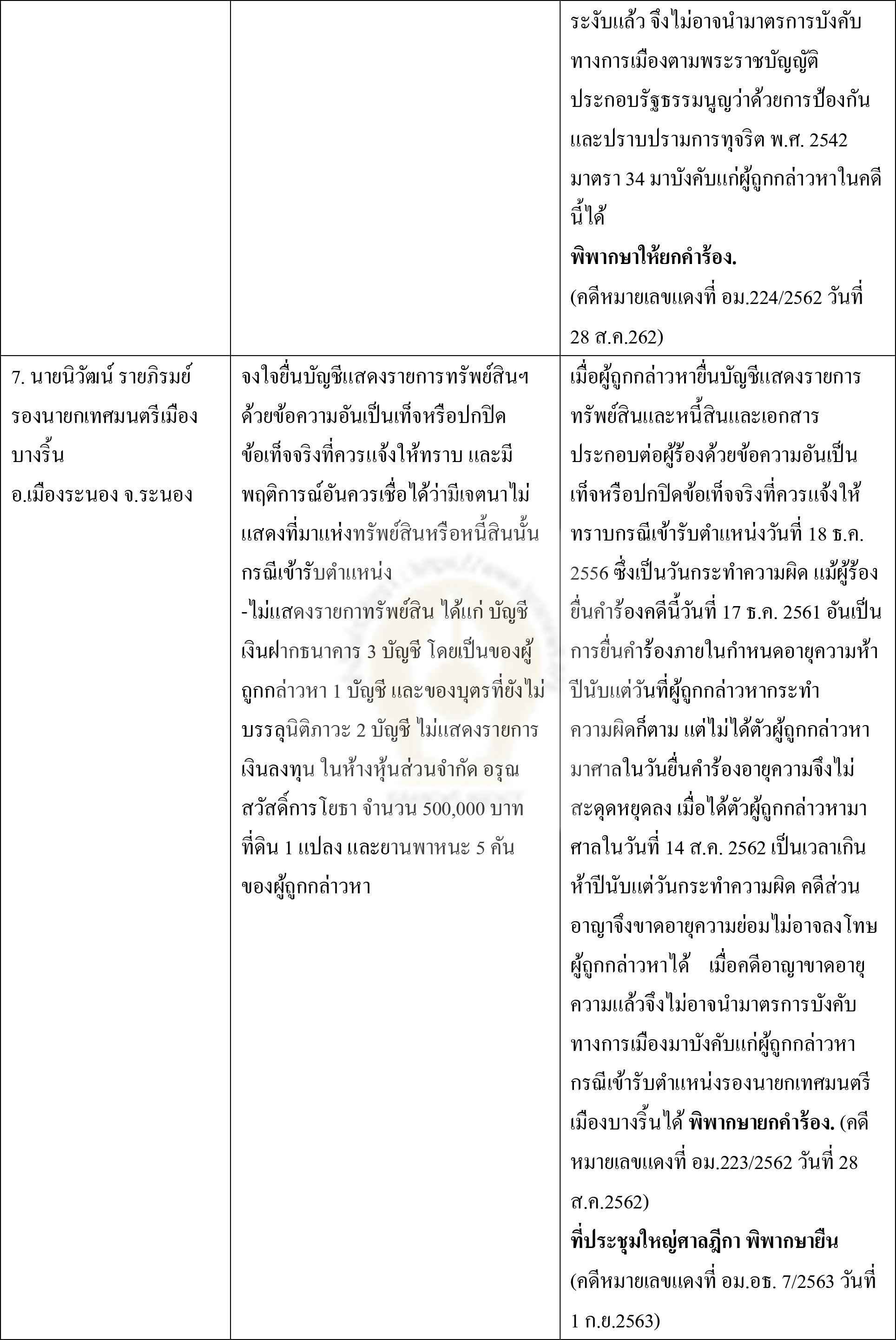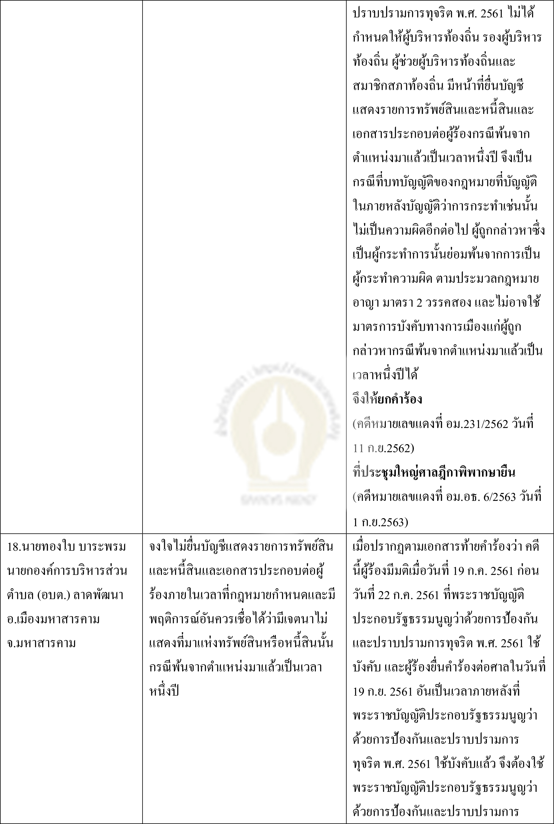 ที่เหลือ 19 รายคดี ขาดอายุความ 5 ปี ,พระราชบัญญัติประกอบรัฐธรรมนูญว่าด้วยการป้องกันและปราบปรามการทุจริต พ.ศ. 2561 ไม่ได้กำหนดให้ตำแหน่งที่ถูกกล่าวหามีหน้าที่ต้องยื่นบัญชีฯ ได้แก่