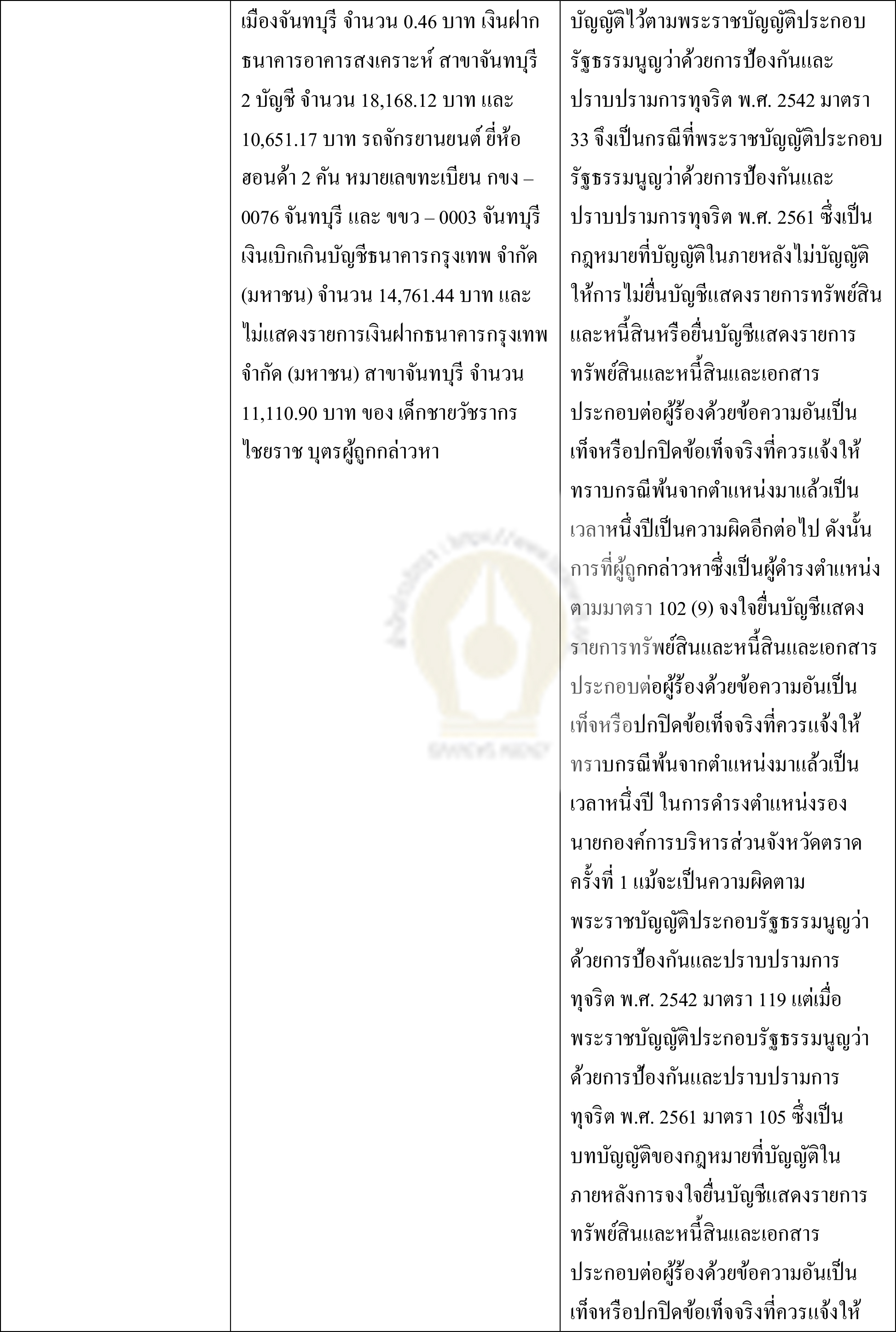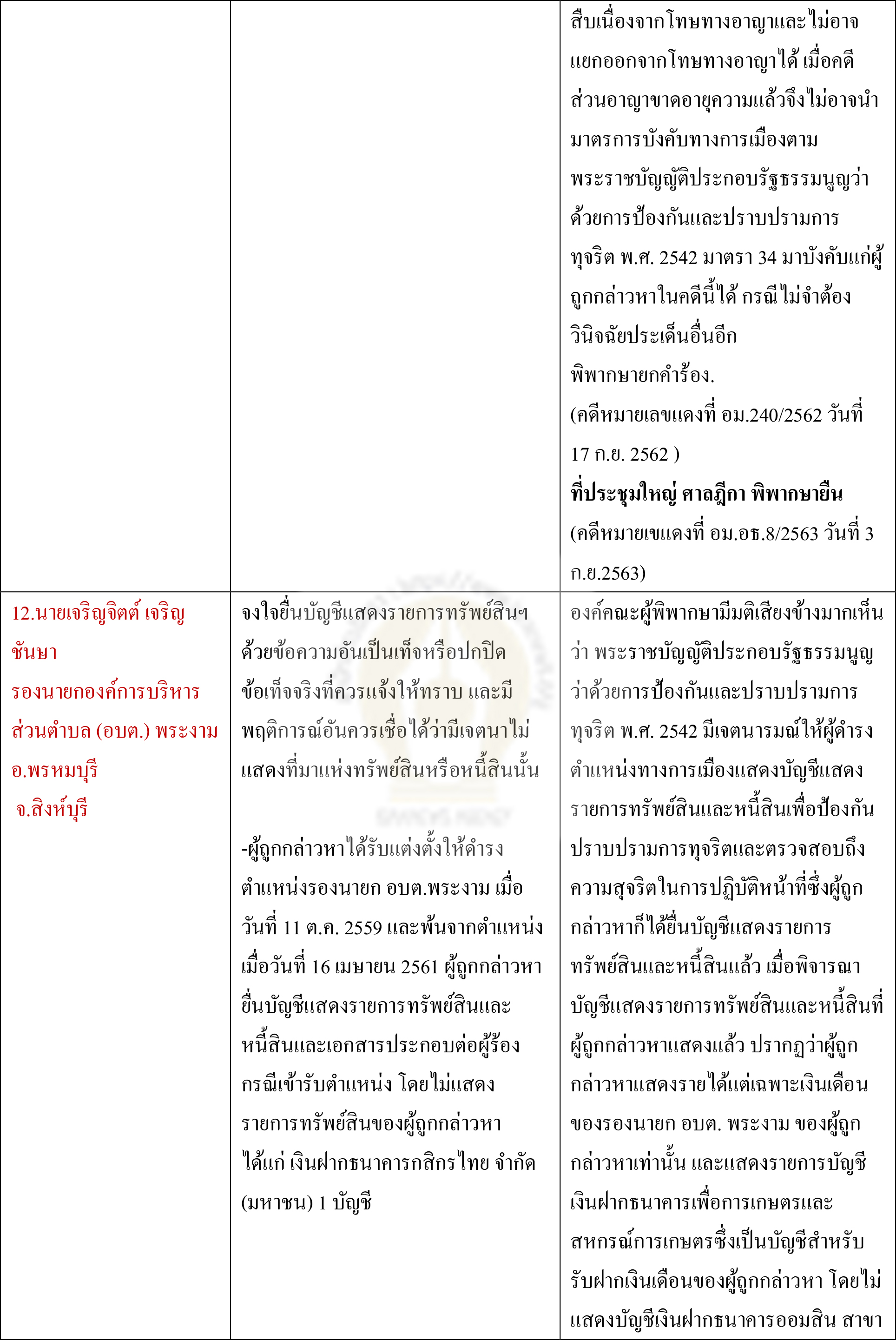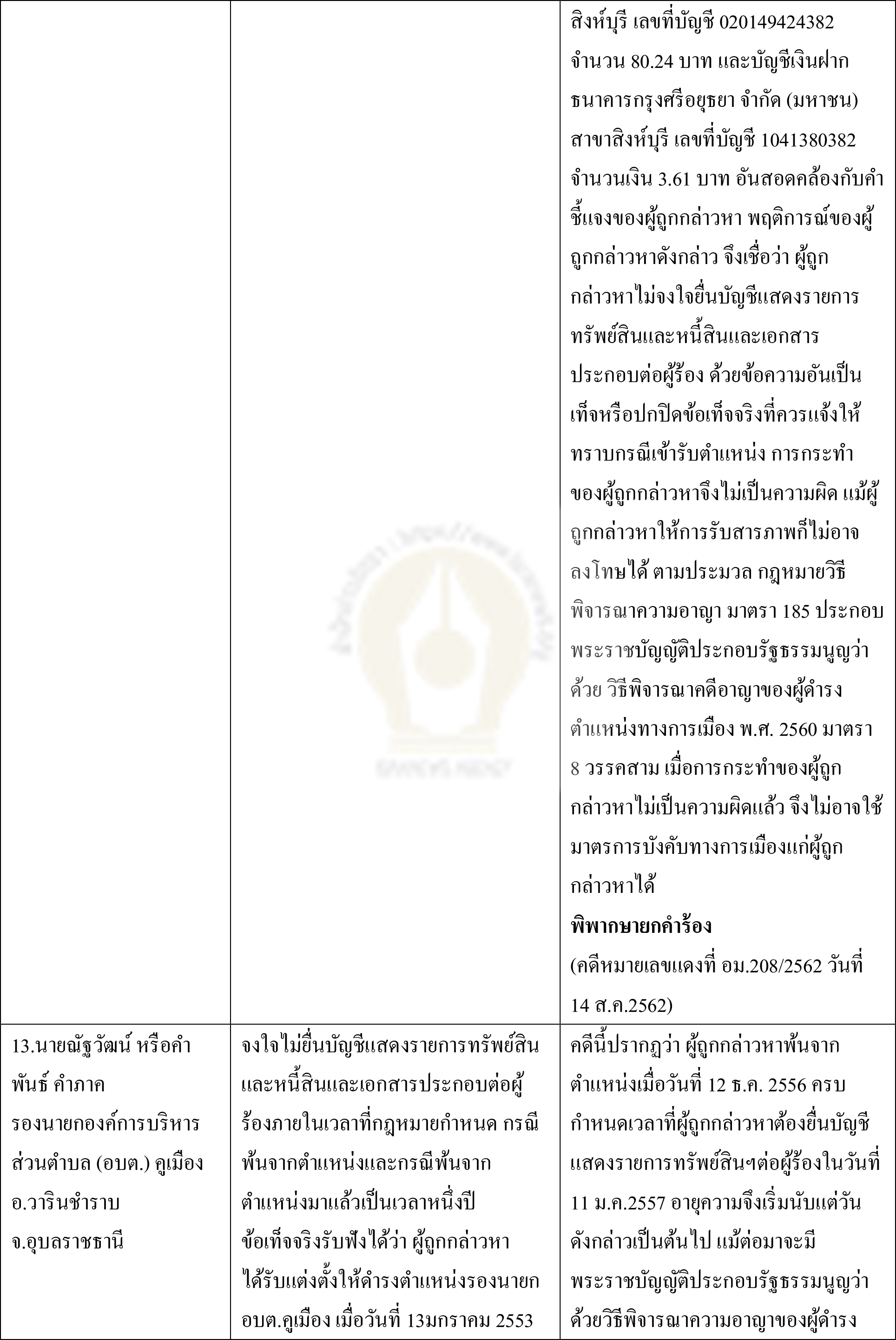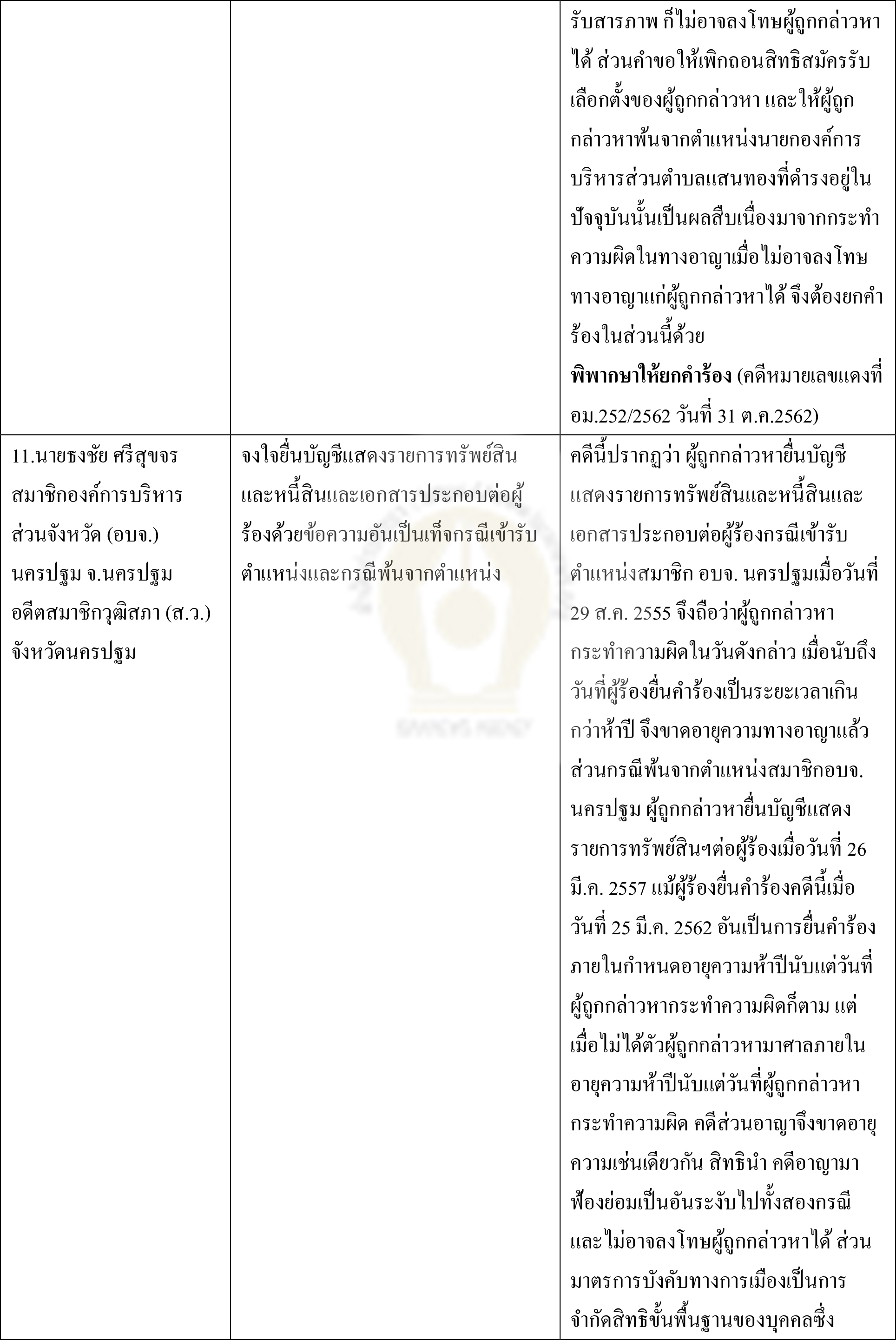 ที่เหลือ 19 รายคดี ขาดอายุความ 5 ปี ,พระราชบัญญัติประกอบรัฐธรรมนูญว่าด้วยการป้องกันและปราบปรามการทุจริต พ.ศ. 2561 ไม่ได้กำหนดให้ตำแหน่งที่ถูกกล่าวหามีหน้าที่ต้องยื่นบัญชีฯ ได้แก่