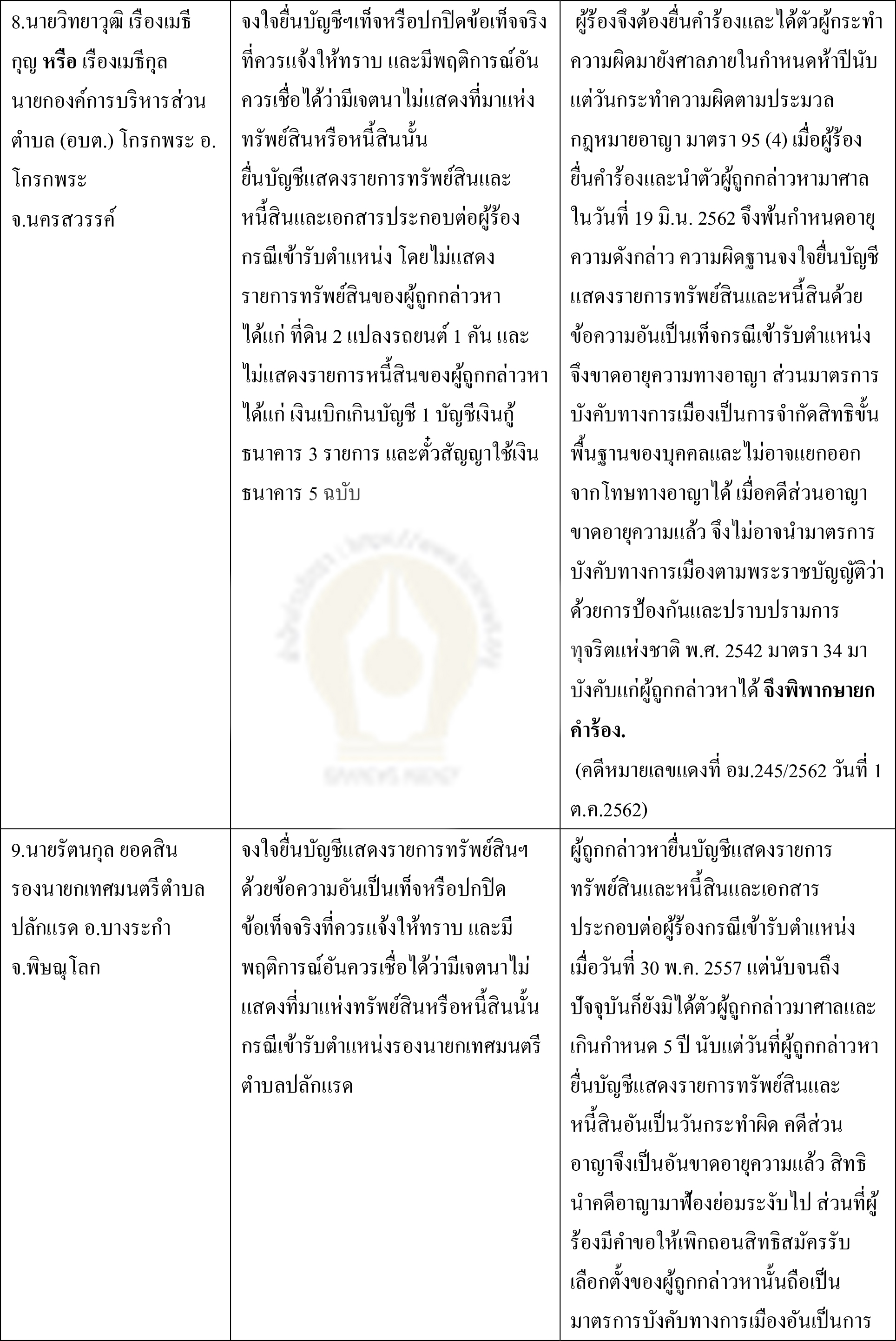 4 คดีนายก อบต.-รองฯ สกลนคร ราชบุรี พิษณุโลก ร้อยเอ็ด ยื่นเท็จ -ไม่ยื่นบัญชีฯ