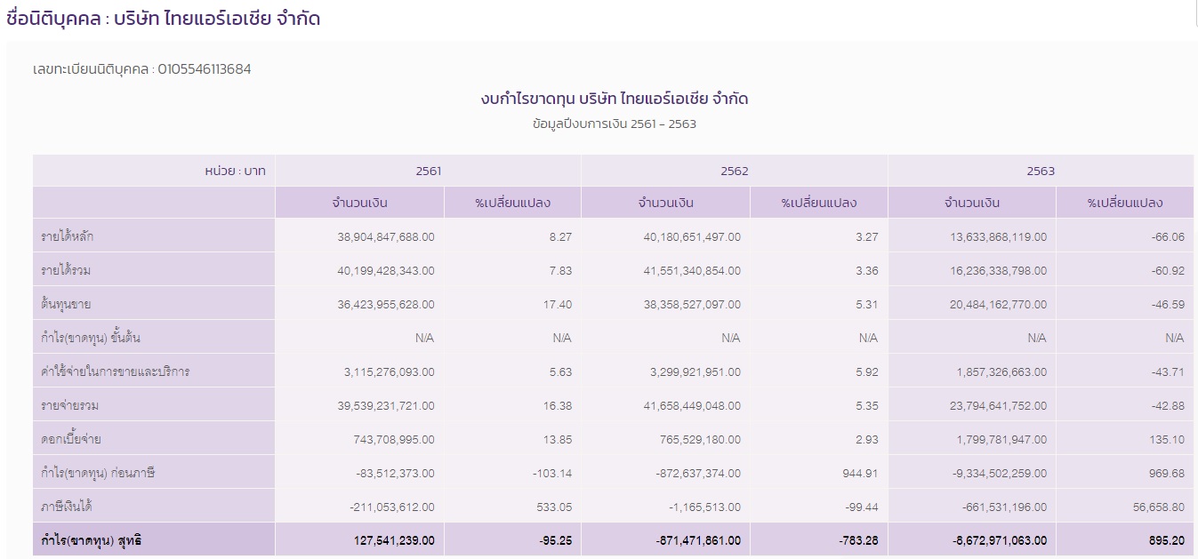 2.บริษัท ไทยแอร์เอเชีย จำกัด นำส่งงบการเงินล่าสุดเมื่อปี 2563 มีรายได้รวม 16,236,338,798 บาท รายจ่ายรวม 23,794,641,752 บาท ดอกเบี้ยจ่าย 1,799,781,947 บาท เสียภาษีเงินได้ 661,531,196 บาท ขาดทุนสุทธิ 8,672,971,063 บาท