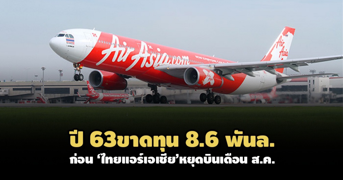 เปิดงบการเงิน ‘ไทยแอร์เอเชีย’ หลังข่าวหยุดบินชั่วคราวในประเทศเดือน ส.ค.-รายได้เป็นศูนย์ เหตุผลกระทบโควิด-19 รายได้ปี 63 กว่า 1.6 หมื่นล. แต่ขาดทุนสุทธิ 8.6 พันล. ส่วน AVA หุ้นใหญ่ไตรมาส 1/64 ขาดทุนไปแล้วกว่า 4.7 พันล.