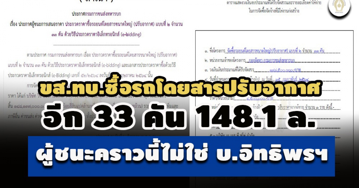 INFO : 7 สัญญา 429 คัน 2,250 ล้าน ขส.ทบ จัดซื้อรถปรับอากาศ บ.อิทธิพรฯ