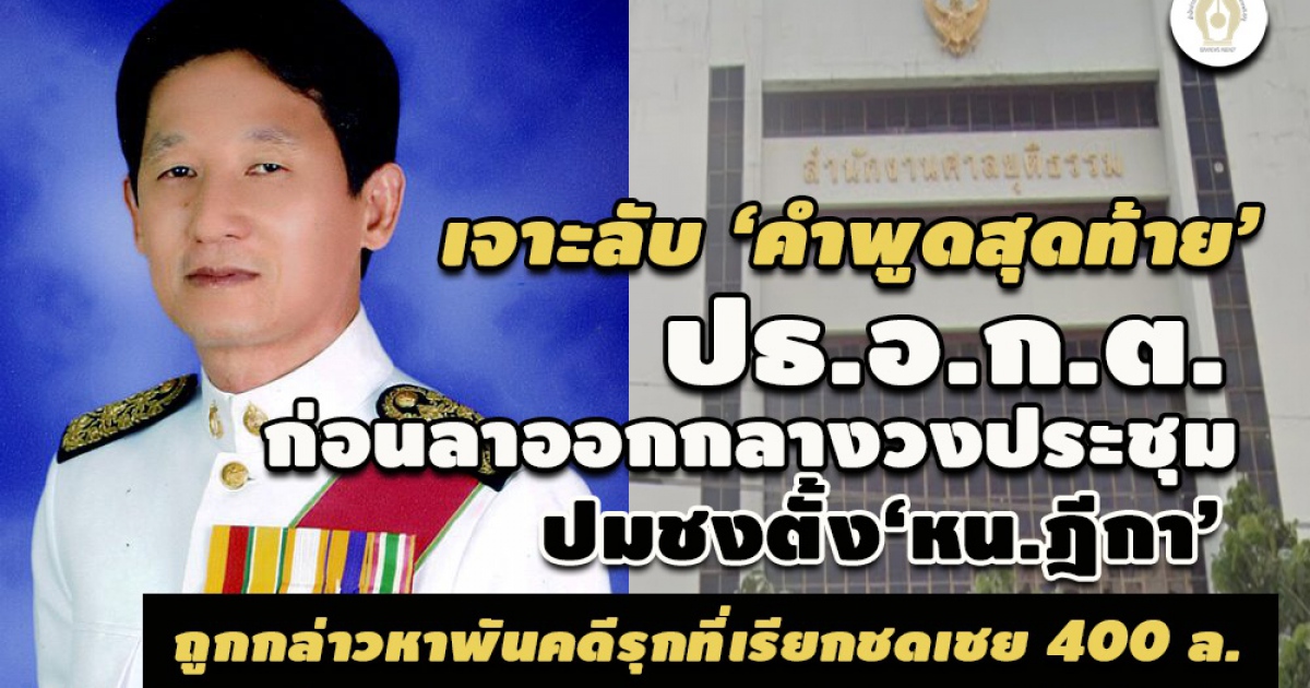 (อ่านประกอบ : ปธ.อ.ก.ต.ลาออกกลางวงประชุม! ปมชงตั้ง‘หน.ฎีกา’ถูกกล่าวหาพันคดีรุกที่เรียกชดเชย 400 ล.)