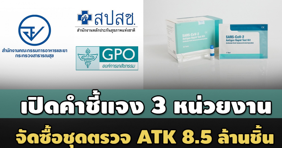 กรณีองค์การเภสัชกรรม (อภ.) จัดซื้อชุดตรวจโควิด แบบ Antigen Test Kit (ATK) จำนวน 8.5 ล้านชุด ที่ได้รับมอบหมายจากโรงพยาบาลราชวิถี ให้ดำเนินเป็นการเร่งด่วน ตามโครงการพิเศษของสำนักงานหลักประกันสุขภาพแห่งชาติ (สปสช.) สำหรับให้ประชาชนใช้ตรวจคัดกรองเชิงรุก เพื่อค้นหาผู้ป่วยเข้าสู่ระบบการรักษารวดเร็วขึ้น เพิ่มประสิทธิภาพการควบคุมโรค