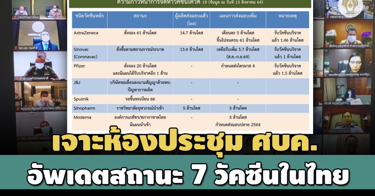 ทั้งหมดเป็นอัพเดตสถานการณ์วัคซีนโควิดจากที่ประชุม ศบค.เมื่อวันที่ 16 ส.ค.ที่ผ่านมา