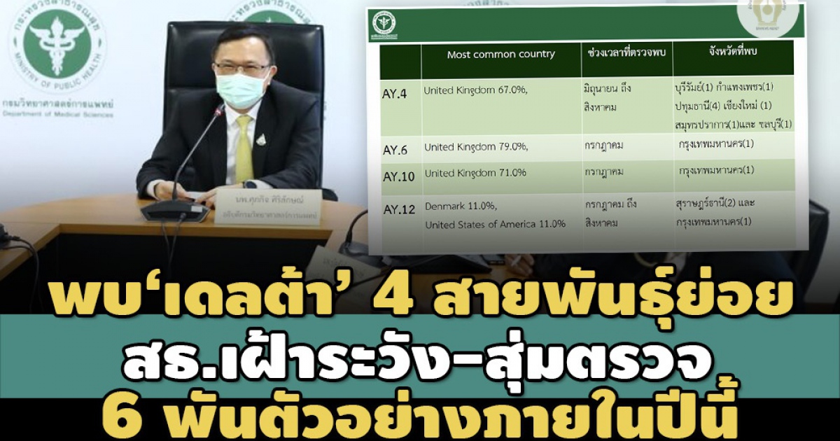 @ สายพันธุ์เดลต้าย่อย ไม่ใช่สายพันธุ์ไทย