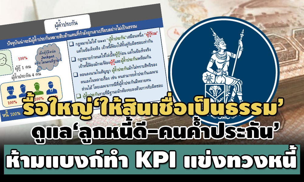 @ห้ามแบงก์ตั้ง KPI ให้บริษัทที่ได้รับจ้างฯแข่งทวงหนี้