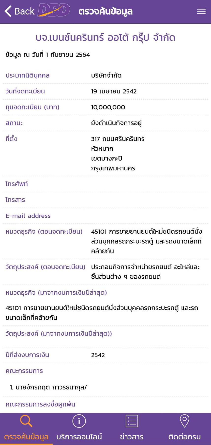 สำนักข่าวอิศราตรวจ สอบพบว่า บริษัท เบนซ์นครินทร์ ออโต้กรุ๊ป จำกัด ชื่อเดิม บริษัท แฮมเมอร์ เอเชีย จำกัด จดทะเบียนวันที่ 19 เม.ย. 2542 (เปลี่ยนชื่อ เมื่อ 21 มิ.ย.2543 ) ทุนปัจจุบัน 10 ล้านบาท ที่ตั้งเลขที่ 317 ถนนศรีนครินทร์ แขวงหัวหมาก เขตบางกะปิ จังหวัดกรุงเทพมหานคร นายจักรกฤต ถาวรธนากุล ถือหุ้นใหญ่และเป็นกรรมการ สถานะปัจจุบันยังคงดำเนินการ แต่ส่งงบการเงินล่าสุดรอบปีสิ้นสุด 31 ธ.ค.2542