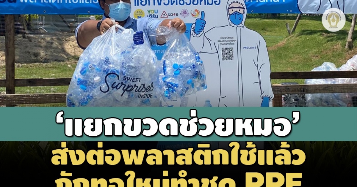 "...จำนวนขวดพลาสติก PET 18 ขวด ปริมาณ 600 มิลลิลิตร สามารถนำมาผลิตชุด PPE ได้ 1 ชุด ซึ่งแคมเปญแยกขวดช่วยหมอ 3 ครั้งที่ผ่านมา เราสามารถผลิตชุด PPE รวมกันสะสมได้จำนวน 20,000 ชุดแล้ว..."