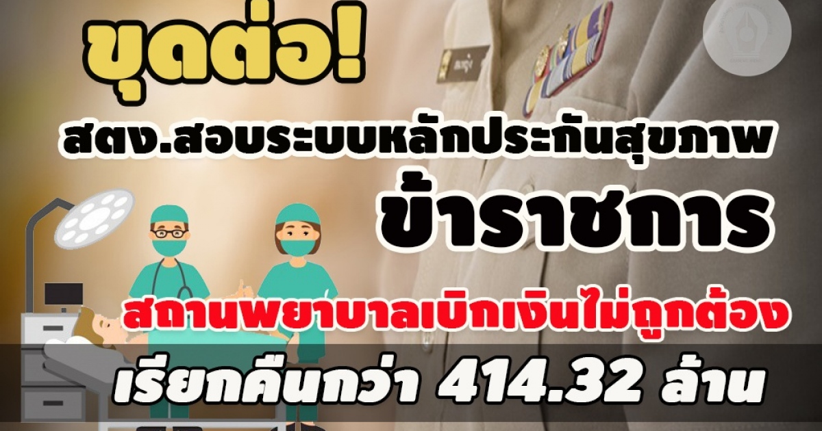 สำนักข่าวอิศรา ได้รับการเปิดเผยข้อมูลว่า สตง.ได้เข้าทำการตรวจสอบระบบหลักประกันสุขภาพ สวัสดิการรักษาพยาบาลของข้าราชการ พบปัญหาสำคัญว่า สถานพยาบาลจัดทําหลักฐานเพื่อส่งเบิกในระบบเบิกจ่ายตรงไม่ถูกต้อง ไม่ครบถ้วน